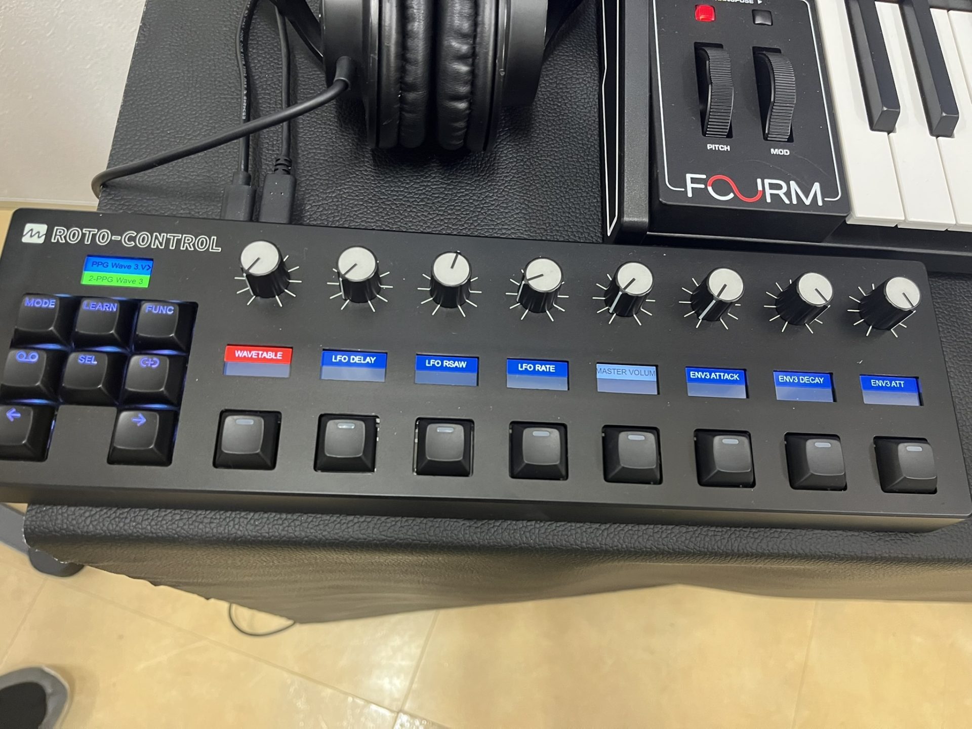 こちらは、(残念ながら)非売品の専用コントローラーです。 「MONTAGE M」本体でもメニューの階層深くでシンセのパラメーターを編集できますが、その主要なパラメーターを(本体から)取り出して物理的に操作できるようにしたもの、と言えば分かりやすいかもしれません。