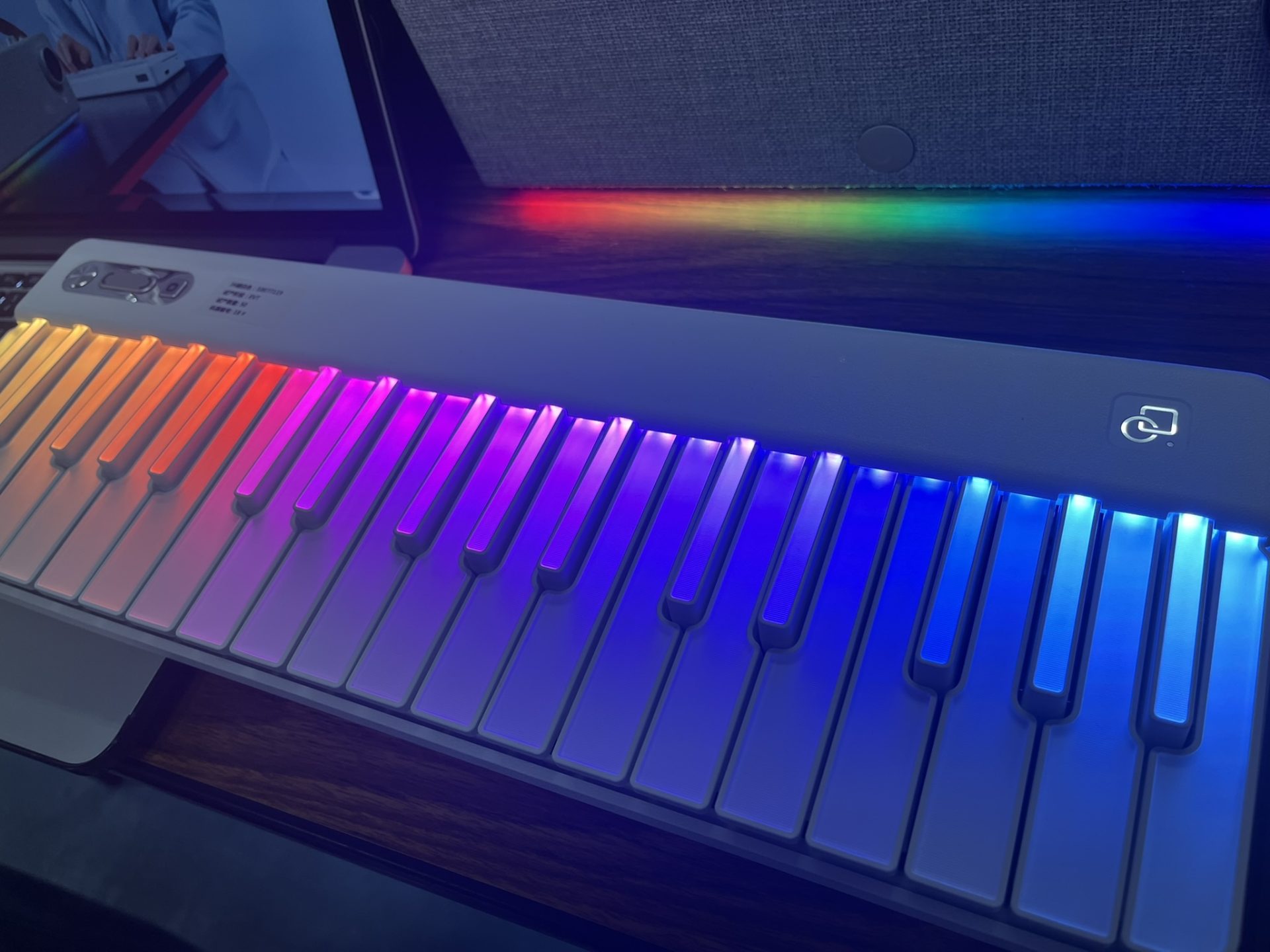 カラフルでコンパクトなMIDIキーボード。Bluetoothでアプリと接続し、光のガイドでコードやメロディーを演奏することができます。