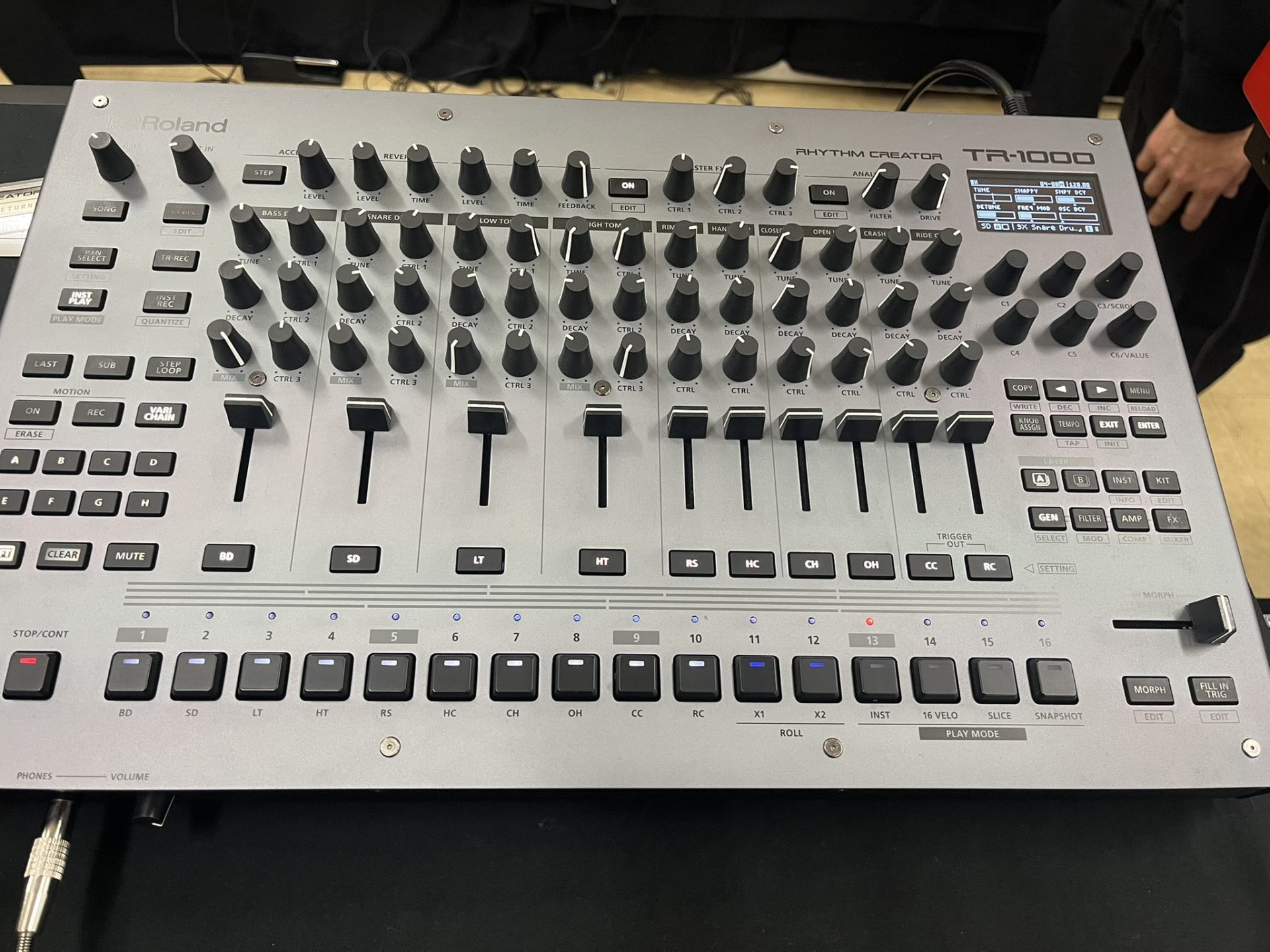 ローランドブースには、シンセサイザーやドラム・マシーン、ガジェットなどが勢揃い。もちろんすべて試奏することができました。