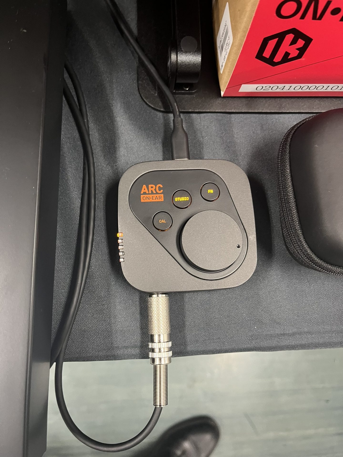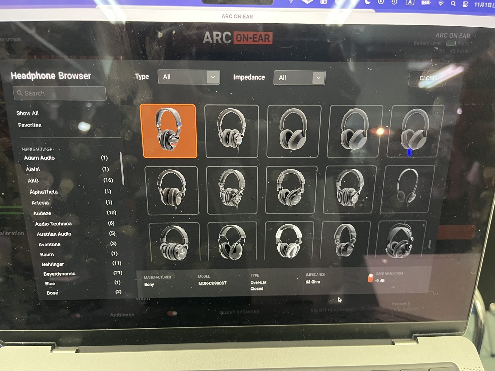 IK Multimedia ブースではヘッドフォンの音響補正、バーチャル・モニタリングを可能にするDAC内蔵ポータブル・ヘッドフォン・アンプ「ARC ON•EAR」が体験できました。