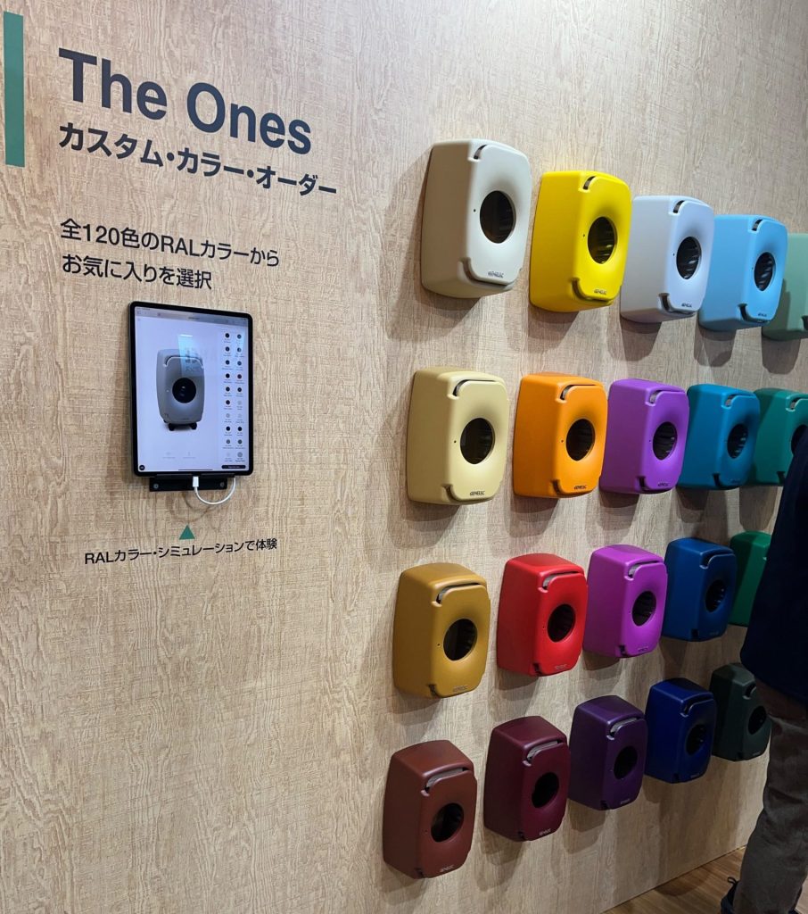 Genelecのメイン・モニター・シリーズに新たに加わる同軸3ウェイ・SAMメイン・モニター「8380A」が展示されていました。カスタムカラーオーダー。120色もあるんですね。