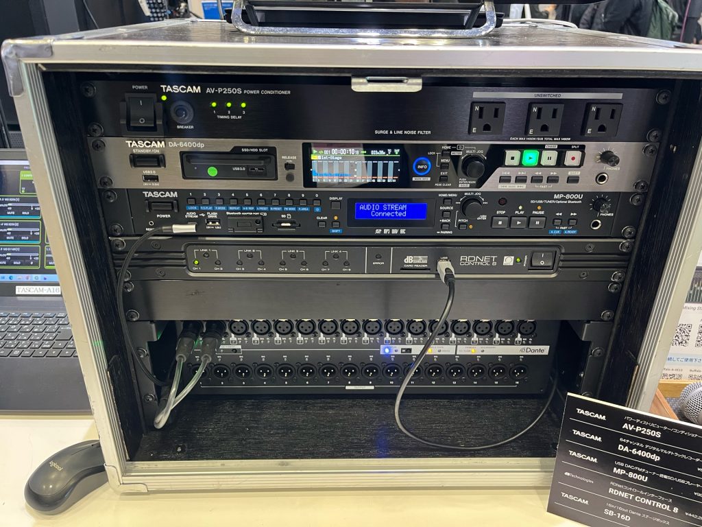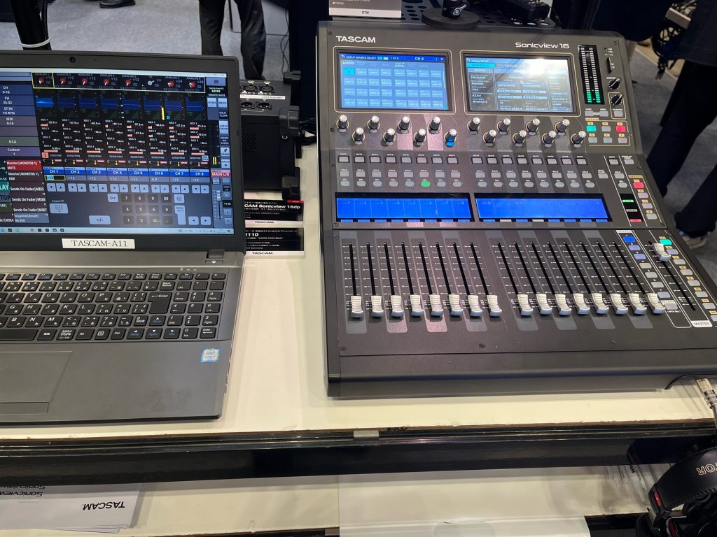 デジタルミキサー『TASCAM Sonicview』にDC電源を追加した電源二重化モデルやフィールドレコーダー等を展示。