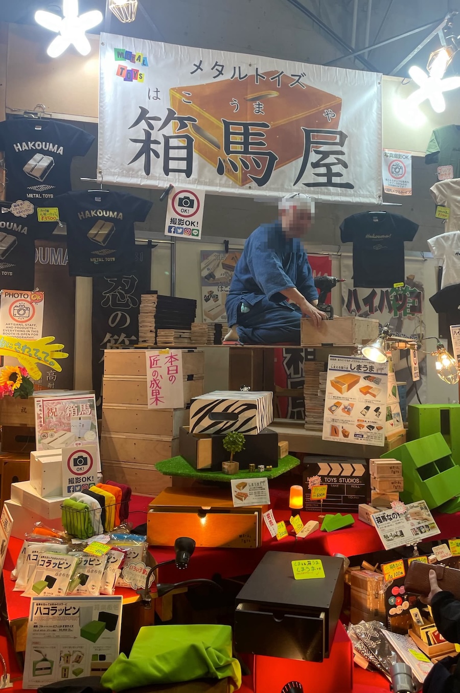 InterBEEならではの「箱馬(はこうま)」制作実演。箱馬は、木板を貼り合わせて作られた箱状の木箱で、舞台や撮影現場などで、高さを出すための土台や踏み台として使われるものです。