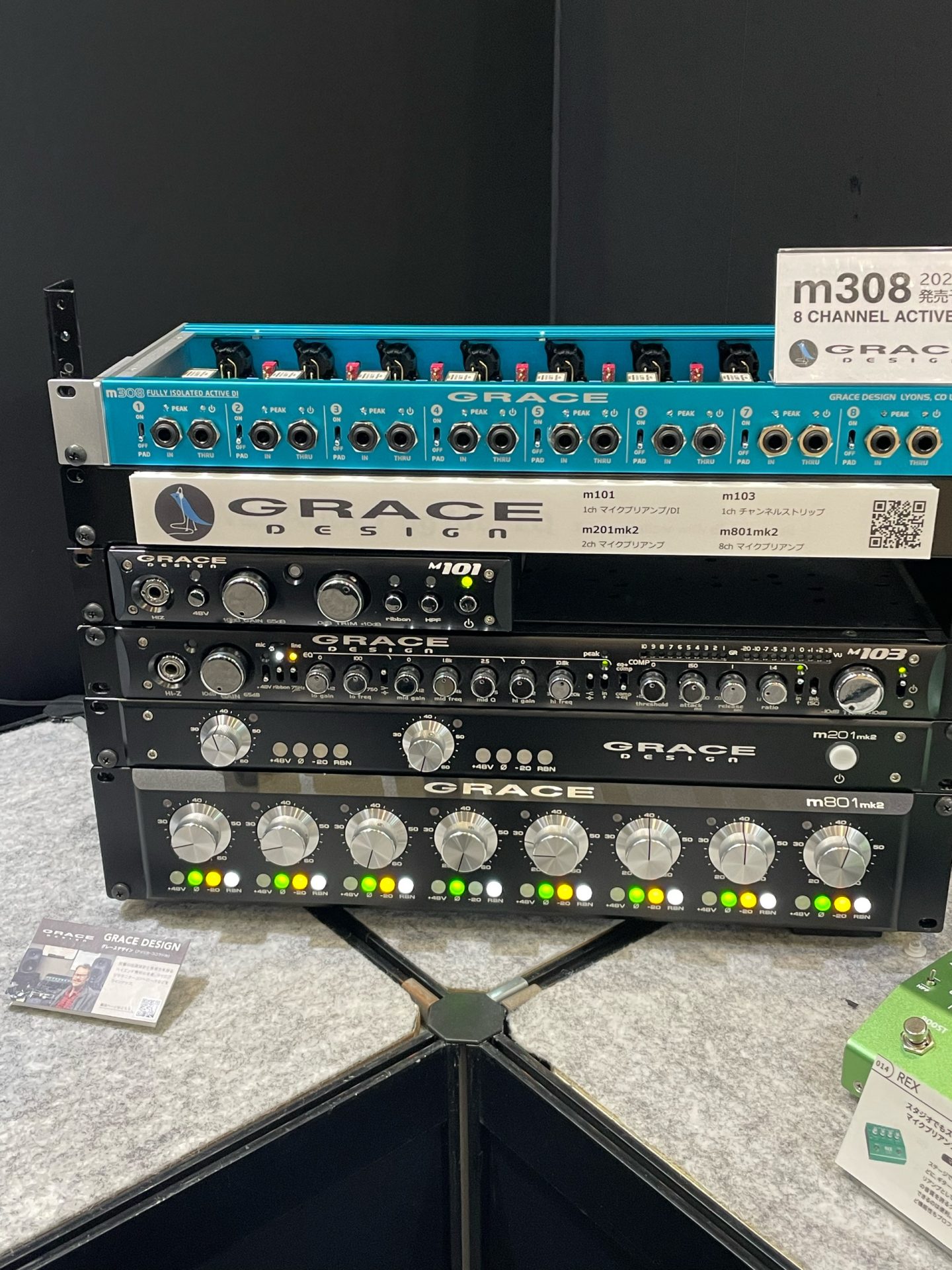 GRACE designの創業者マイケル・グレース氏とイーベン・グレース氏が来日!Inter BEE 2025で製品の一斉展示&豪華抽選会も開催しておりました。ヘッドホンアンプ「m900(税込 126,500円)をガラポンで当てたかたがいらっしゃったそうです。羨ましい〜