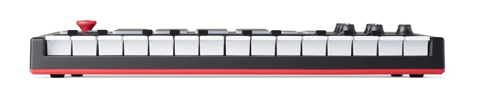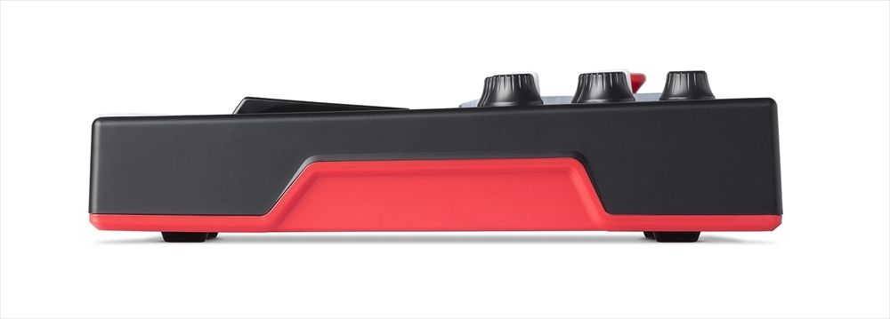 オクターブ・ボタンで上下4 オクターブの音域を移動可能。8個のバックライト付きドラムパッド(2バンクで合計16)、ノートリピート&フルレベル機能(ドラムパッドにのみ対応)・アルペジエーター機能、XY軸・4方向ジョイスティックのピッチ/モジュレーションコントロール、サスティンペダル端子も装備といったスペック搭載モデル。USBポートを装備しPC/MACで動作します。
