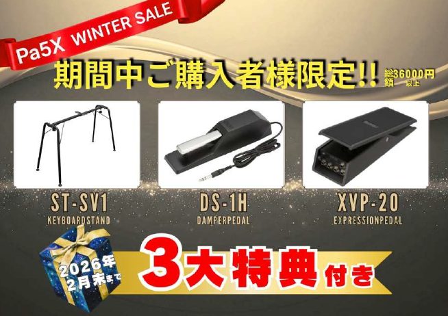 期間中に店舗で購入いただくと、専用スタンド(ST-SV1)、サスティンペダル(DS-1H)、エクスプレッションペダル(XVP-20) がもらえるキャンペーンがスタート!