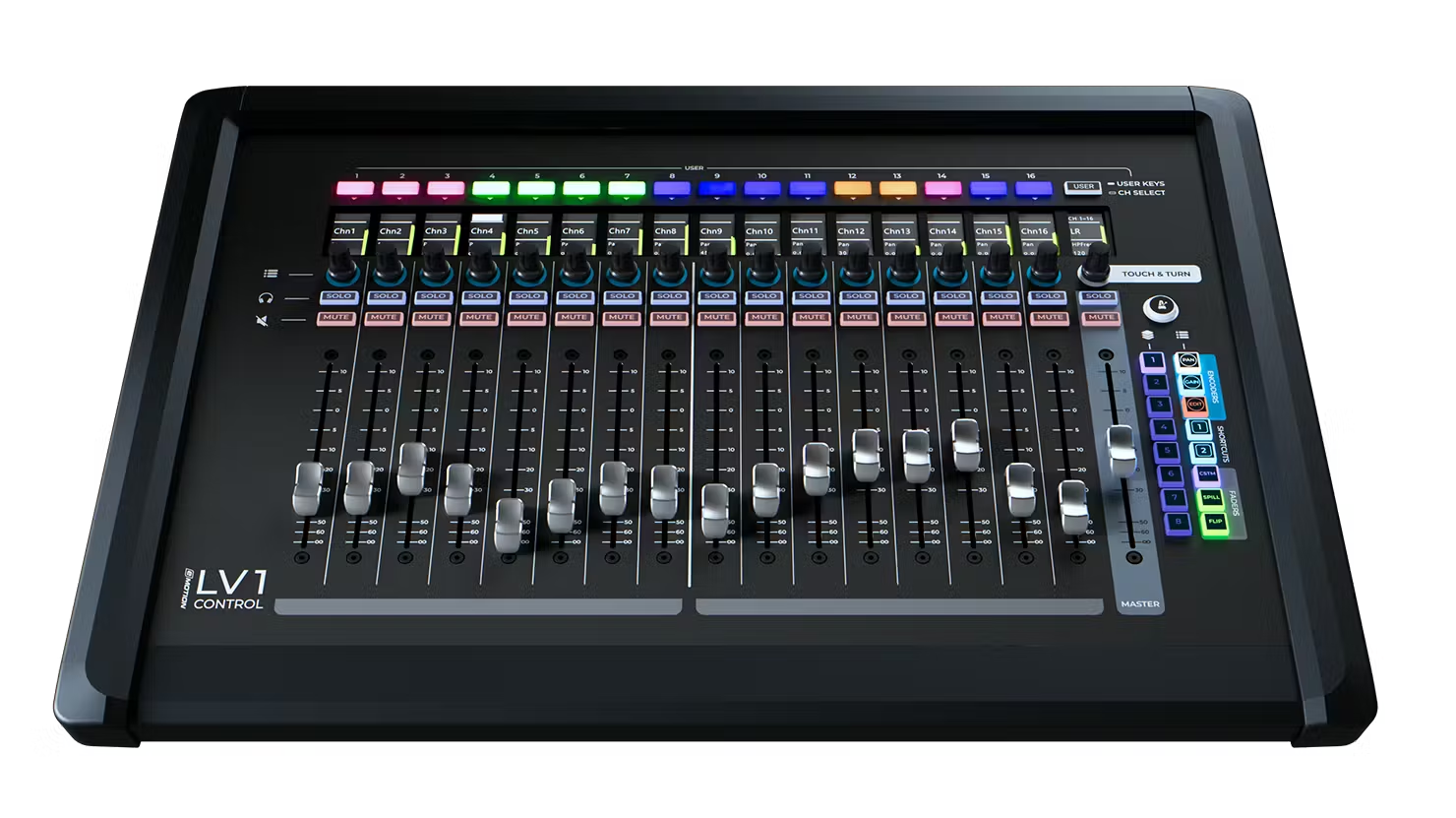LV1 Controlは、eMotion LV1 Classicデジタル・ミキシングコンソール専用に設計された、USB接続のフェーダー拡張ユニット(コントロールサーフェス)です。17本のモーターフェーダーを搭載し、ライブサウンドやスタジオでのミキシング作業をより直感的かつスピーディーにします。