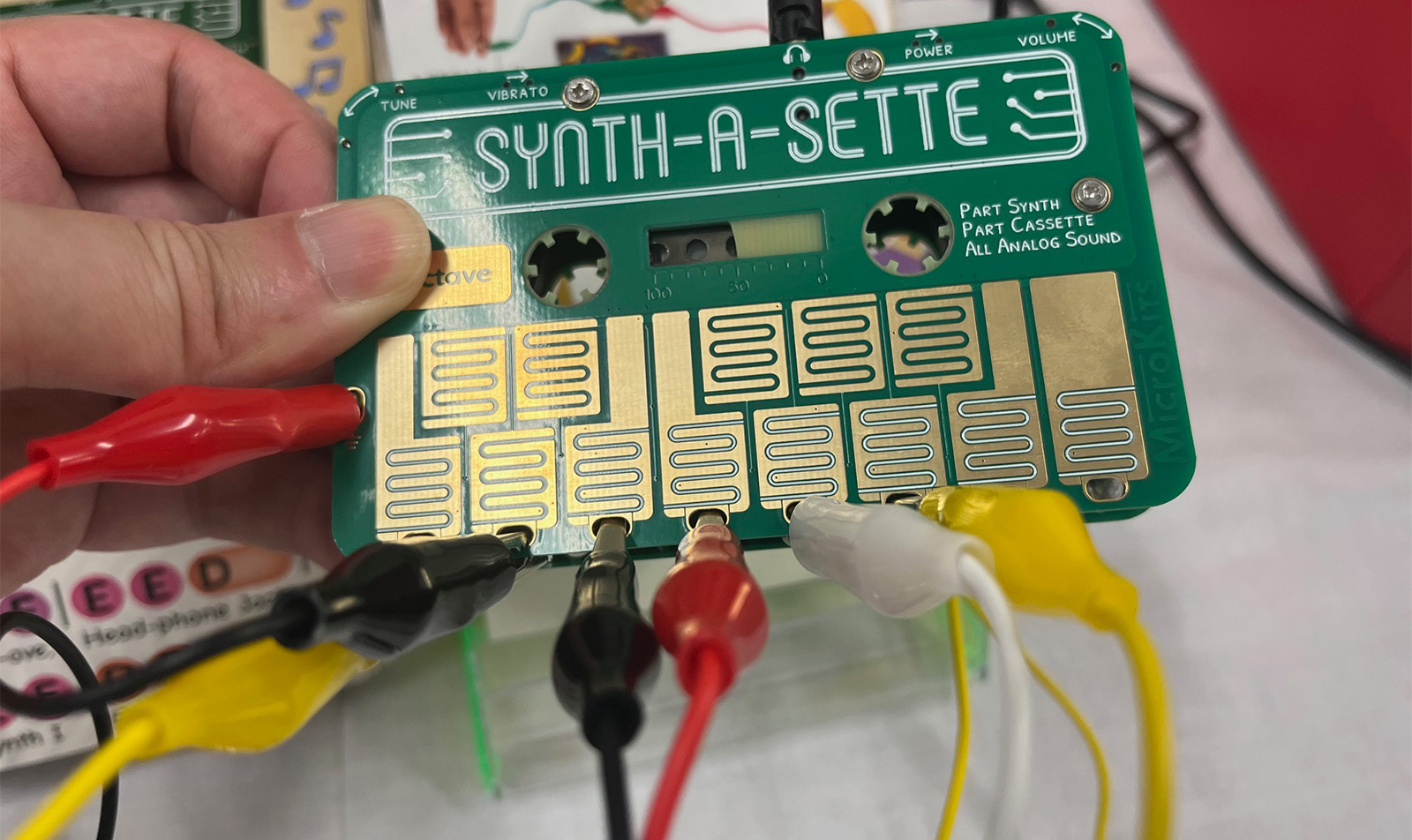 MicroKits (マイクロキッツ) が、身近なものを使って楽器のように演奏できるカセットテープ型デザインの小型アナログシンセサイザー「Synth-a-Sette」(シンサセット)を発売します。