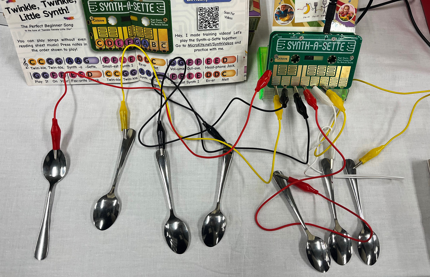 「Synth-a-Sette」から、人(自分)、フォークに辿る回路となり、導電することがわかります。