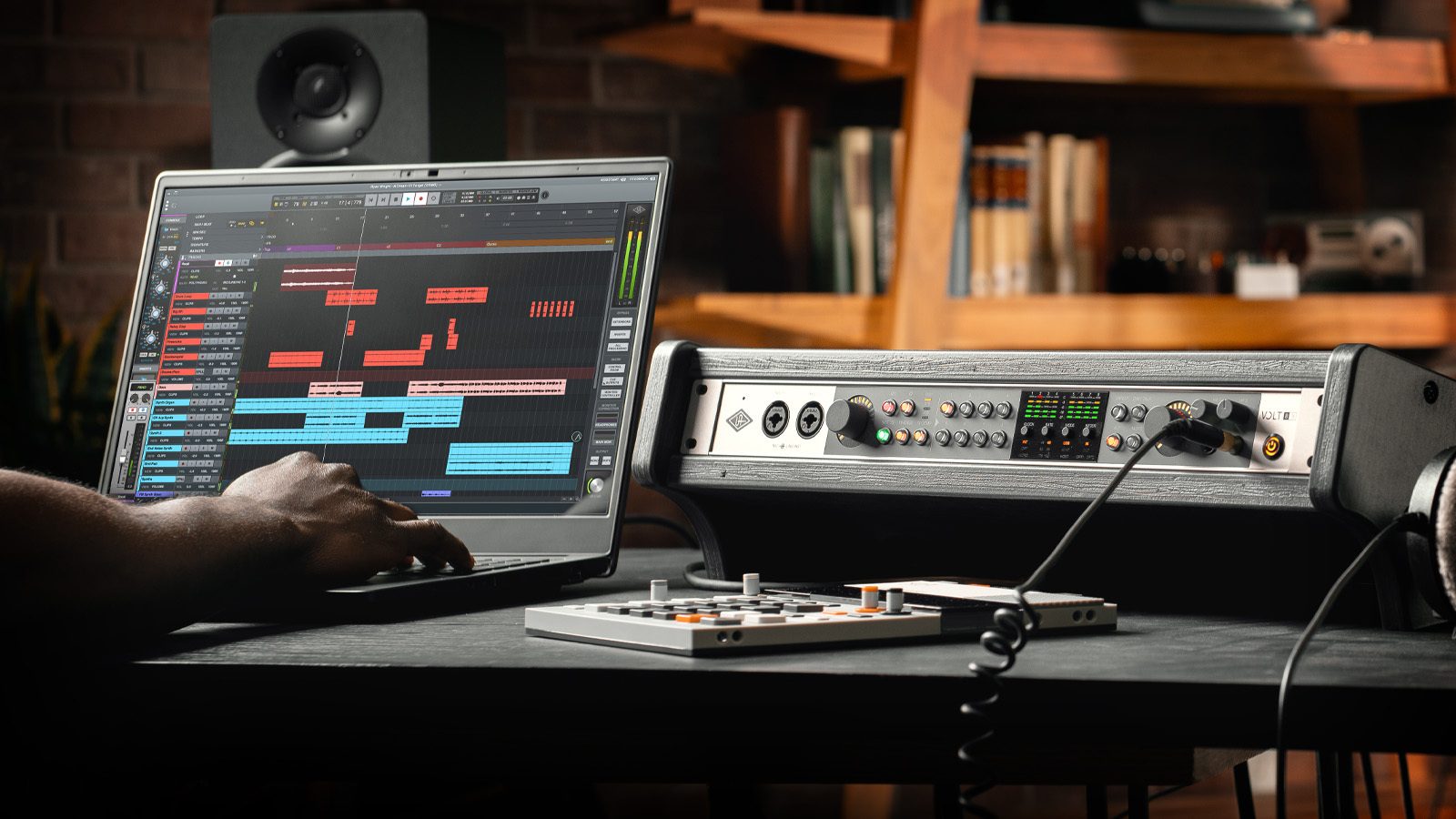 元々多くのサードパーティー製ソフトウェアが付属していた「Volt」シリーズに、自社製のDAWソフトウェアやプラグインを追加し、新コンセプトの「Volt USB Recording Studio」として再リリース。誰でもプロフェッショナルなレベルの音楽制作が手軽に行えるよう設計されており、グラミー受賞プロデューサーが愛用する12種類のUADプラグインやインストゥルメントも含まれています。
