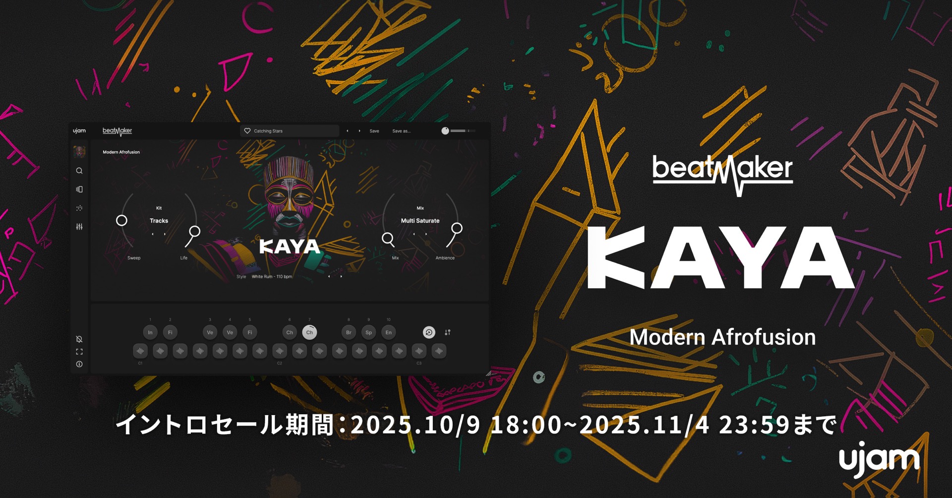 UJAMが躍動感あふれるアフロフュージョン・スタイルのビートメーカー・プラグイン「Beatmaker KAYA」を発売します。