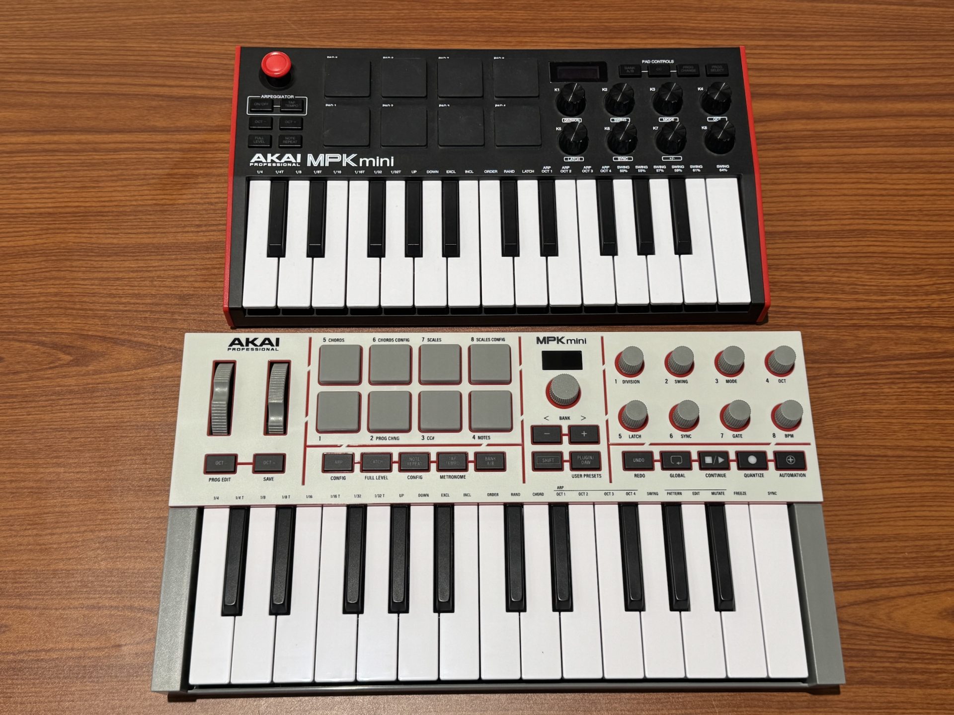 ちなみにMPK mini MK3とMPK mini Ⅳを並べて比較してみるとこんな感じ。