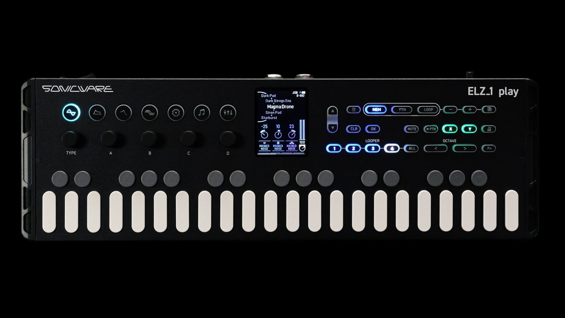 Sonicwareが、 ルーパー搭載のポータブル・シンセサイザー「ELZ_1 play」を発売します。Waldorf 伝説のPPGとMicrowaveから厳選された16種類のウェーブテーブルを内蔵し、Xfer Records社のソフト音源「Serum」のウェーブテーブル・ファイルのインポートにも対応。