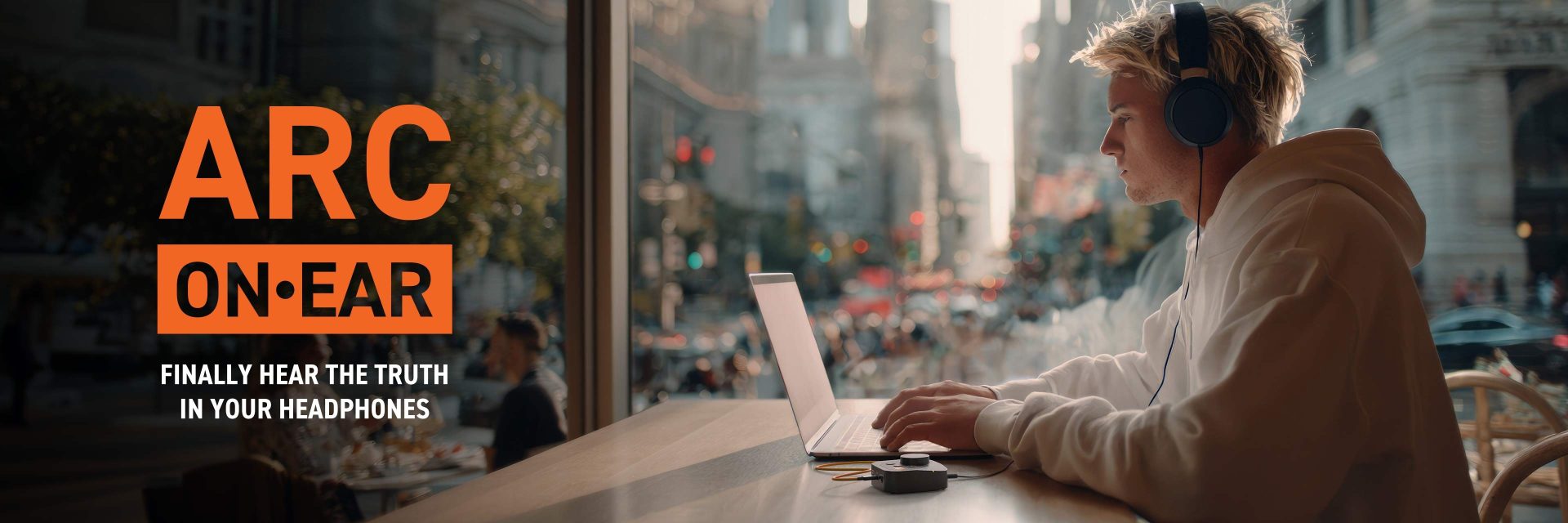 ARC ON•EARは、ヘッドフォンの固有の周波数特性を自動補正し、理想的なスタジオ環境の音を再現します。従来の「ヘッドフォンでのミックスは難しい」という常識を変えるこのシステムは、音像や周波数バランスをフラット化し、制作者の意図通りの判断を可能にします。どのヘッドフォンでも、ARC ON•EARを介せば一貫したリファレンス再生を実現します。