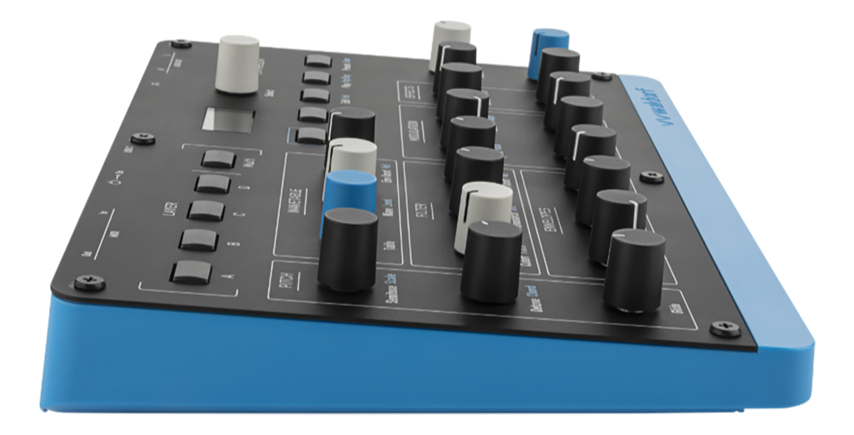 252×170×48mm・0.9kgというコンパクトなボディに、150以上のファクトリーパッチと250スロットのパッチメモリ、柔軟なモジュレーション・マトリクスを搭載し、デスクトップでもモバイル環境でも強力なウェーブテーブル・サウンドを即座に呼び出せるシンセサイザーとして設計されています。