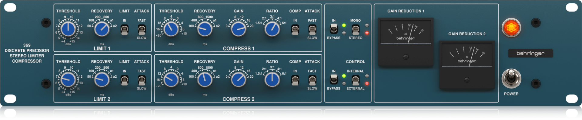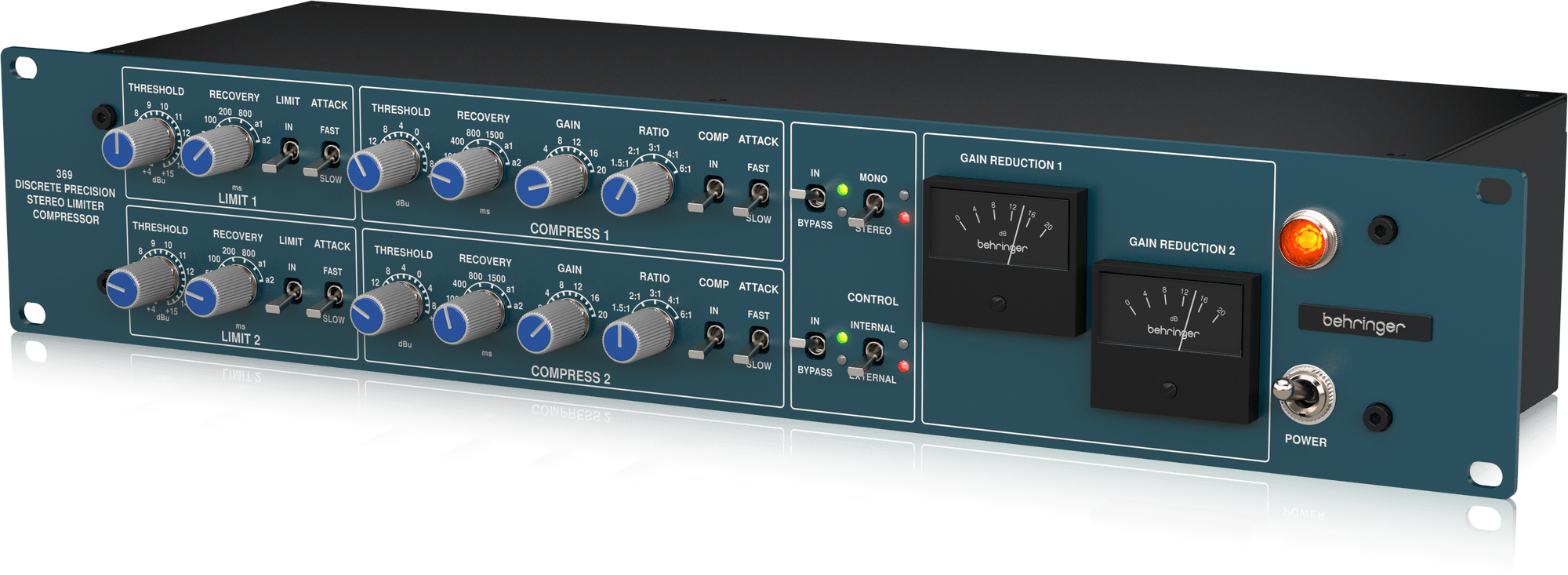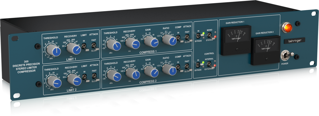 Behringerがカスタム設計のMIDASトランスを内蔵したクラシックスタイルの2チャンネルステレオコンプレッサー/リミッター「369」を発売します。