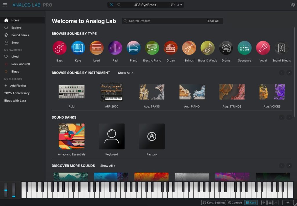 - Analog Lab Proとのシームレスな統合:サウンドの選択、プリセットのブラウズ、スマートアサインされたコントロール