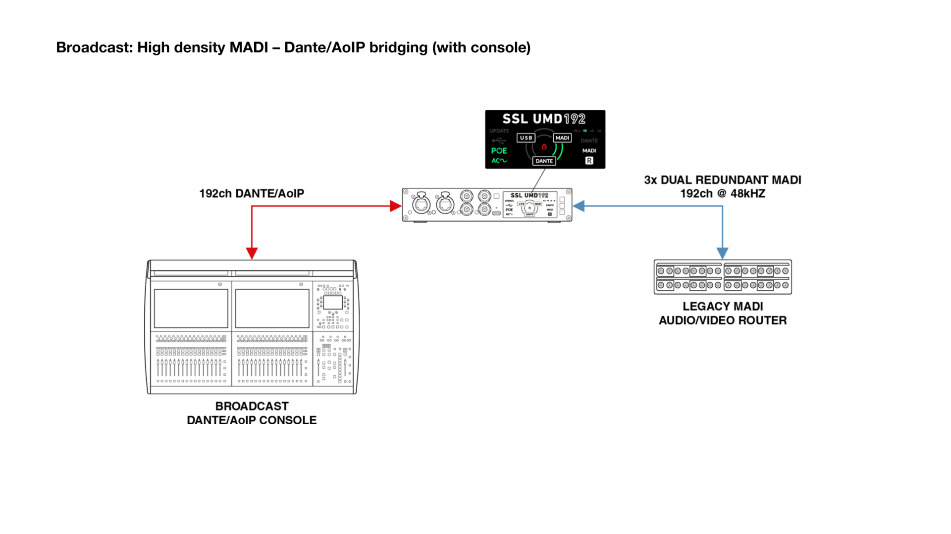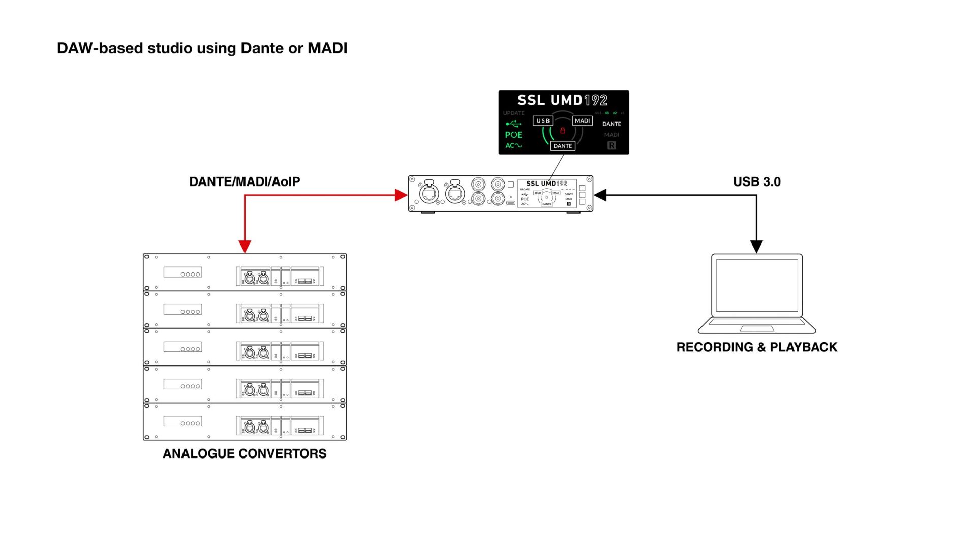 Solid State Logic (SSL)が、USB、MADI、Danteの各フォーマットを双方向で変換可能なインターフェイスユニット「UMD192」を発売します。