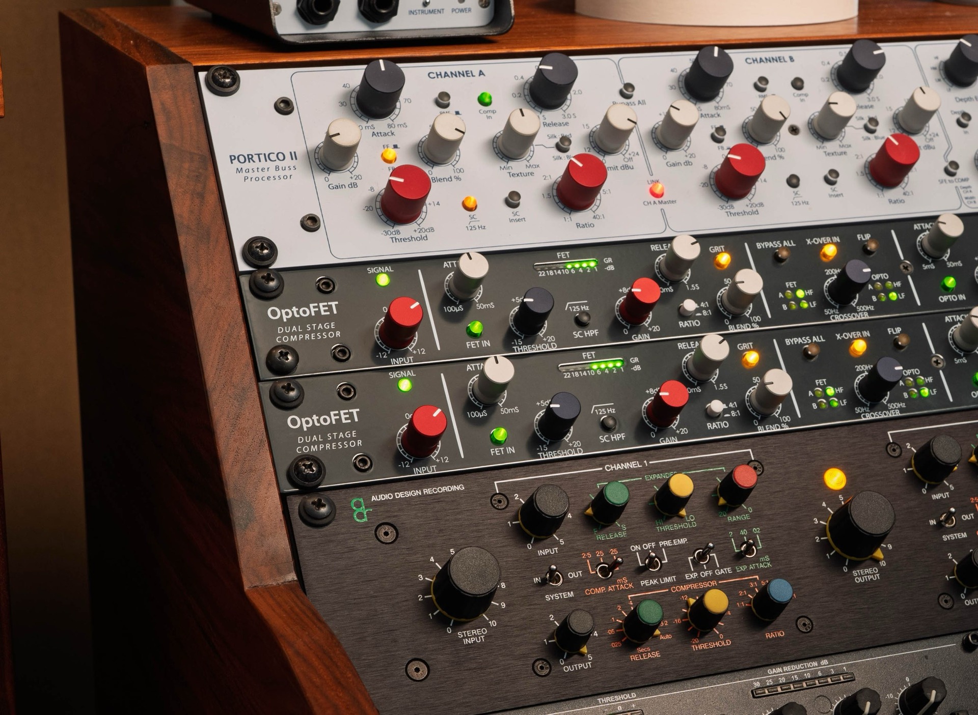 - 新設計のFET回路と最適化された光学式(OPTO)回路を1台に搭載し、直列(Dual Stage)または帯域分割(Dual Band)での自由なルーティングが可能