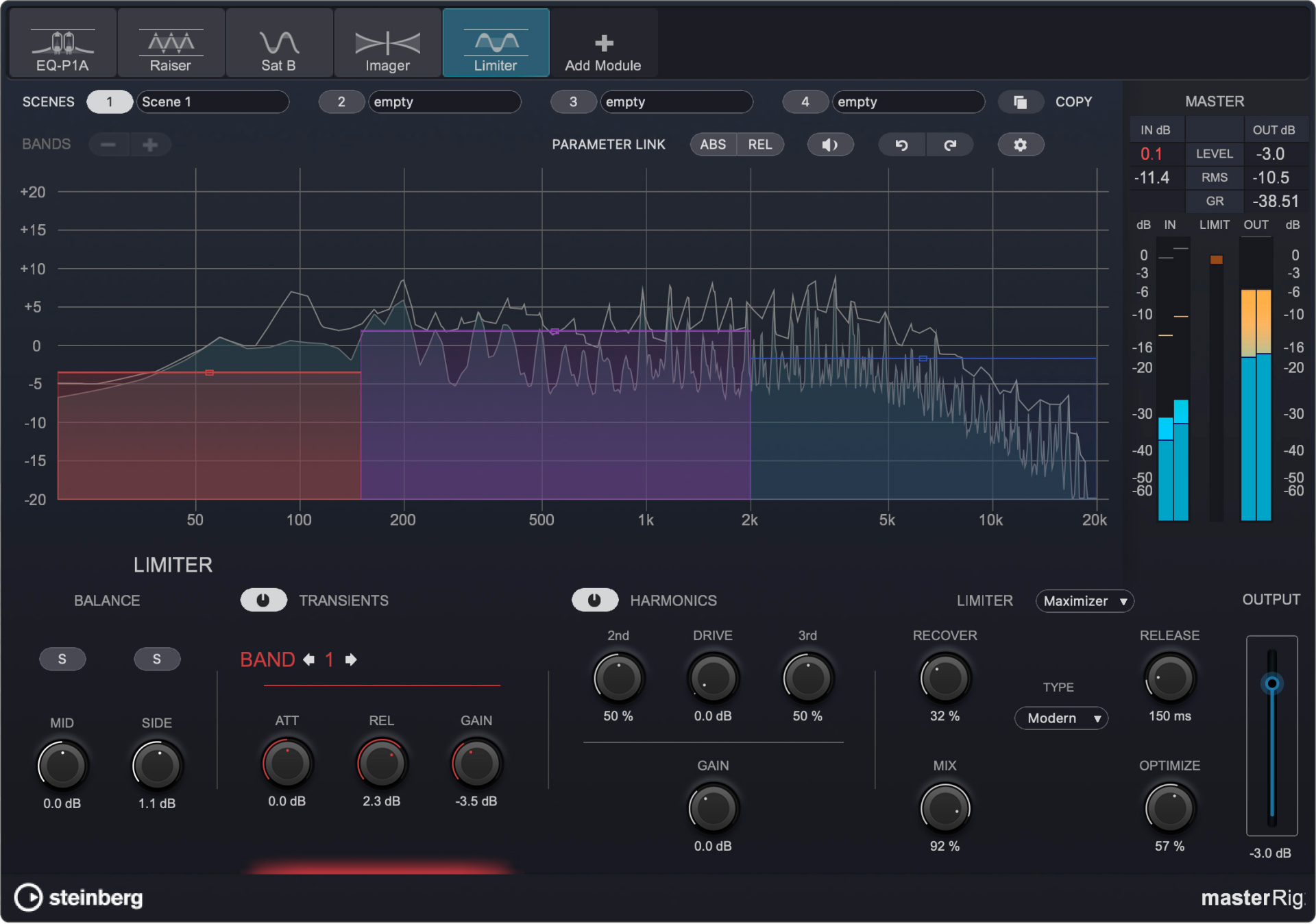 WaveLab 13はマスタリングプラグインスイート「MasterRig 2」を搭載し、モダンなデザイン、サイズ可変UI、サイドチェーン対応に加えて、EQ/コンプレッサー/リミッター/ステレオイメージ各モジュールを強化しました(Pro/Elements共通)。
