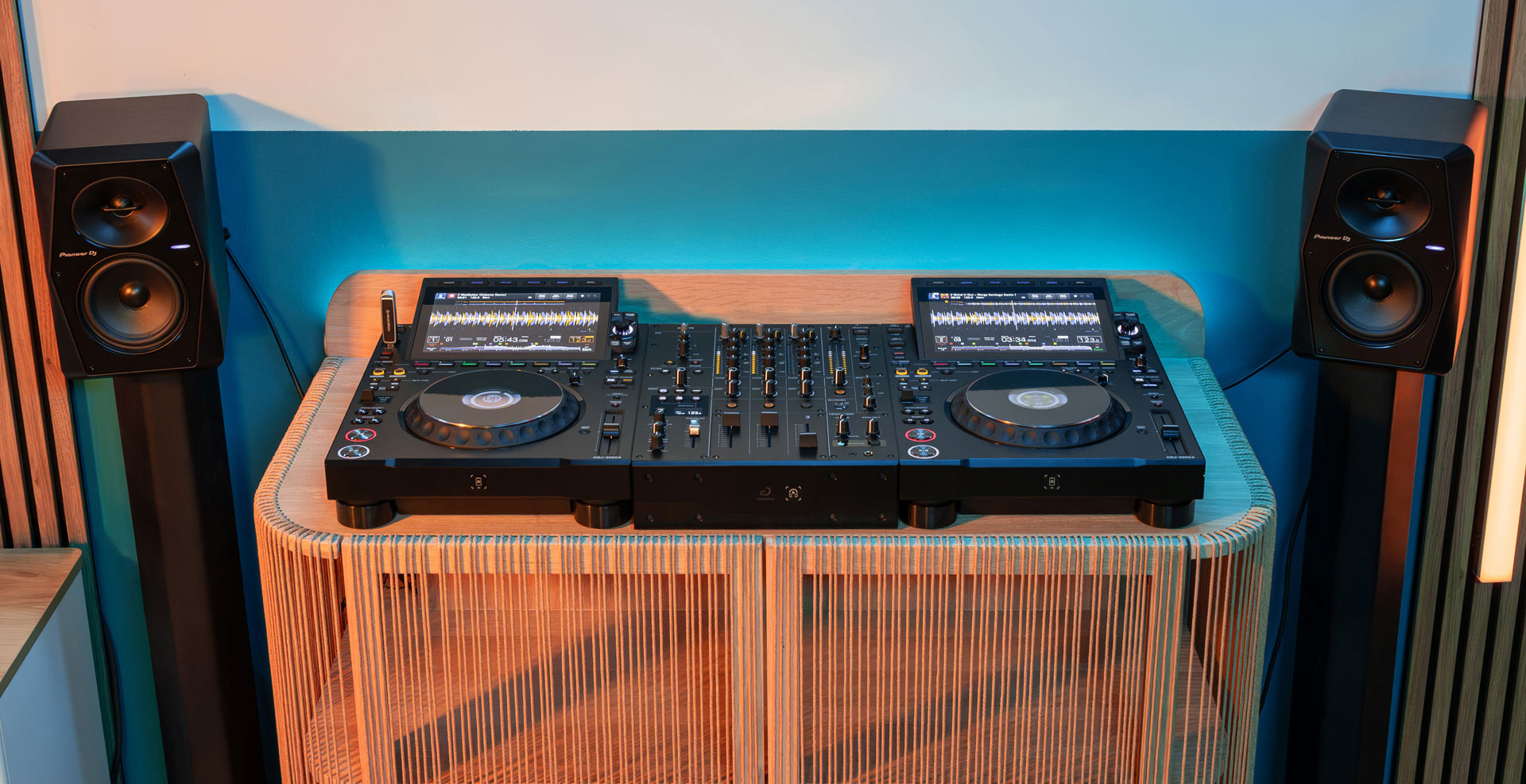 さらにV10から進化したFILTERやSEND FXを搭載し、短い操作で空間の奥行きやグルーヴの強弱を描きやすい設計です。加えて、独自の超低遅延ワイヤレス技術SonicLinkのトランスミッターを内蔵し、「HDJ-F10」との組み合わせでケーブルレスの快適なモニタリング環境を実現。PRO DJ LINKやrekordbox/Serato DJ Pro連携、iPhone/iPad接続(USB Type-C端子搭載機)まで含め、クラブプレイから配信・録音まで柔軟なセットアップに対応します。
