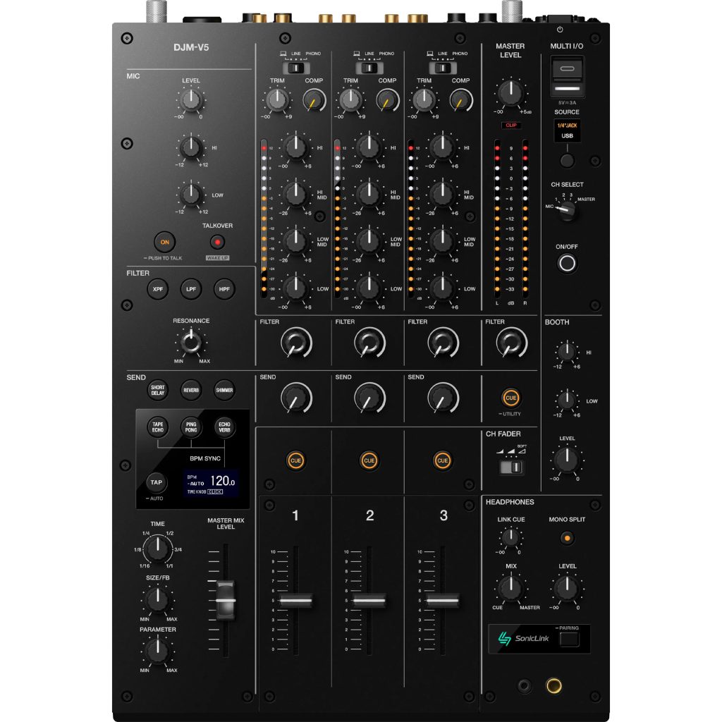 AlphaTheta ( アルファシータ ) が「DJM-V10」譲りの高解像度サウンドと操作感をコンパクトに凝縮したDJミキサー「DJM-V5」を発売します。