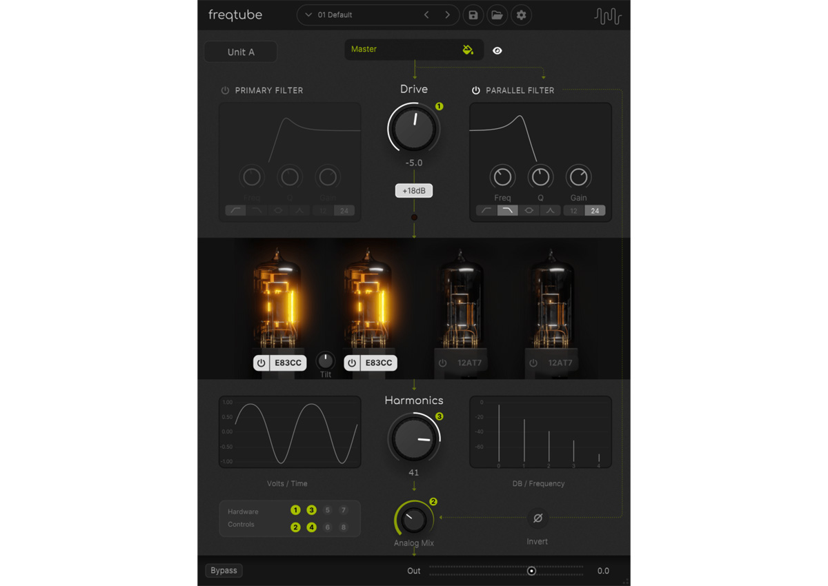 | コントロール | Drive、Overdrive、Harmonics(Even/Odd)、Clipping、Phase、Dry/Wet、Output |