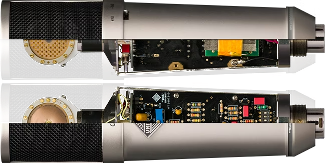 カプセルには、United独自のK87スタイル「UT-K87」を搭載します。デュアルダイアフラム/デュアルバックプレート構成で、真鍮(ブラス)を精密切削した34mmカプセルに、6ミクロンの日本製PETフィルム(Mylar)を張り、膜面へ24kゴールドスパッタを施しています。カプセルのスキニングはクリーンルーム環境で行われ、クラシックに求められる力強さ、汎用性、バランスの良さを狙った設計です。回路面でも、ポリスチレン、タンタル、積層セラミック、WIMAフィルム各種コンデンサー、メタル/カーボン皮膜抵抗、選別トランジスターといったプレミアムパーツを投入し、音質を追求しています。