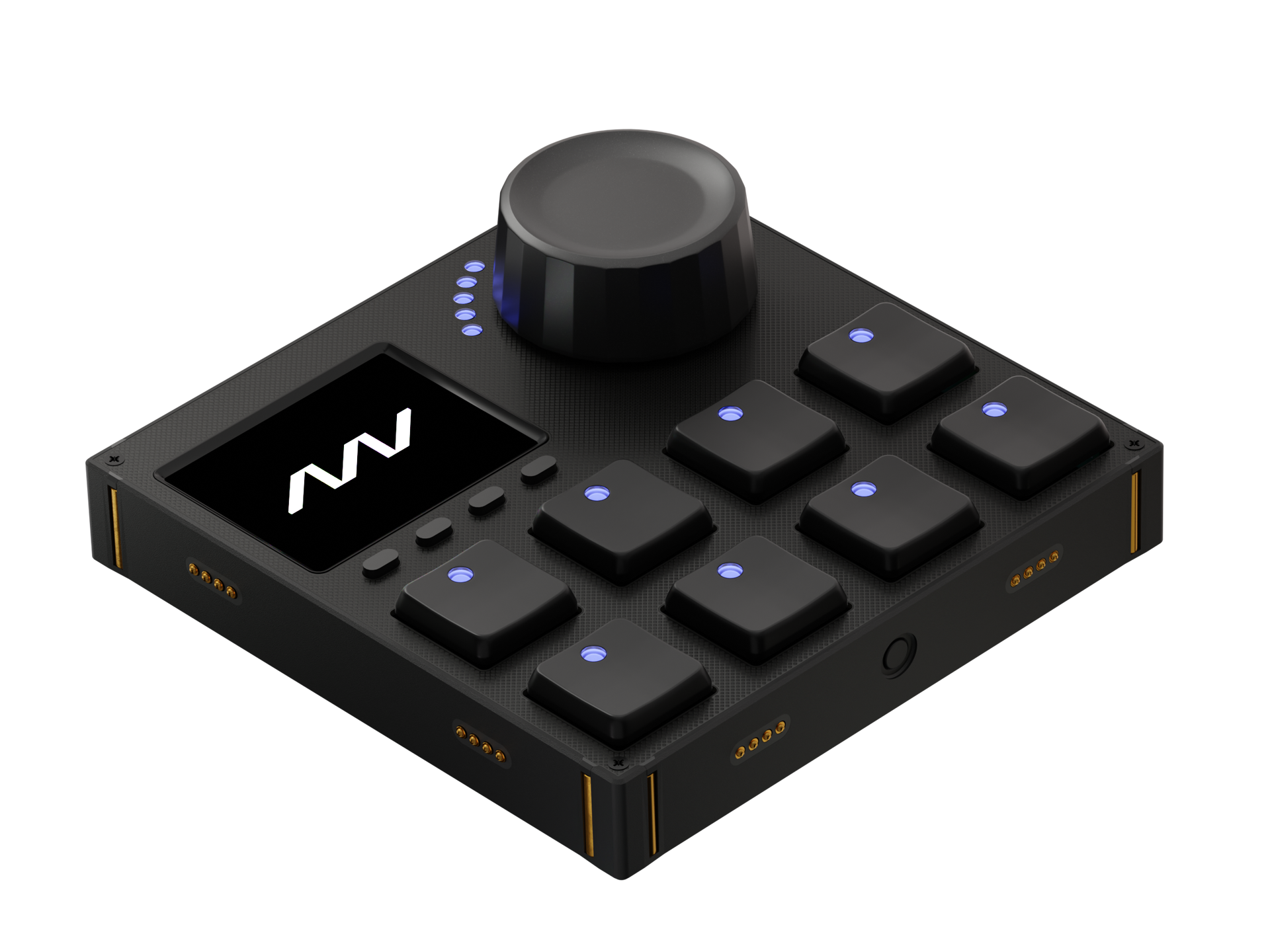 Gridの最大の特徴は、ユーザーの使い方に合わせて自由に組み合わせが可能なモジュラーシステムであることです。各モジュールはサイドに配置された金色のマグネットとピンによって接続され、カチッという音とともにしっかりとロックされます。接続された瞬間、LEDが一斉に点灯し、システムとして認識されます。