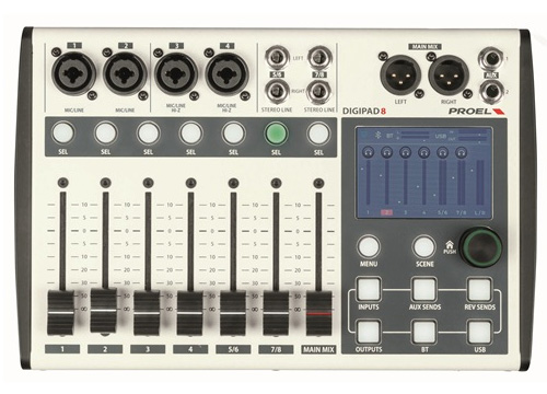 PROEL DIGIPAD8 | 7本モーターフェーダーとアプリ遠隔操作およびBluetooth入力を小型筐体に収めたデジタルミキサー