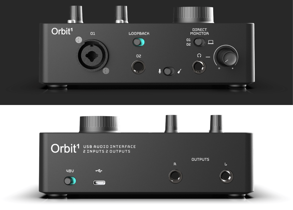 ORBIT 1は、XLR/6.3mm兼用のコンボ入力を1系統、さらにマイク/楽器切り替え可能な6.3mmフォーン入力を1系統備えます。ソロでのボーカル+ギター、ナレーション+楽器など、入力2系統を柔軟に使い分けたい場面で扱いやすい構成です。ORBIT 2は、XLR/6.3mm兼用のコンボ入力を2系統搭載し、マイク2本の対談収録や、ボーカルと楽器の同時録音をよりシンプルに組めます。共通して、TRSバランス出力2系統、ヘッドホン出力、48V、ループバック、ミュートボタンを備え、用途と入力数で選べるラインアップに整理されています。