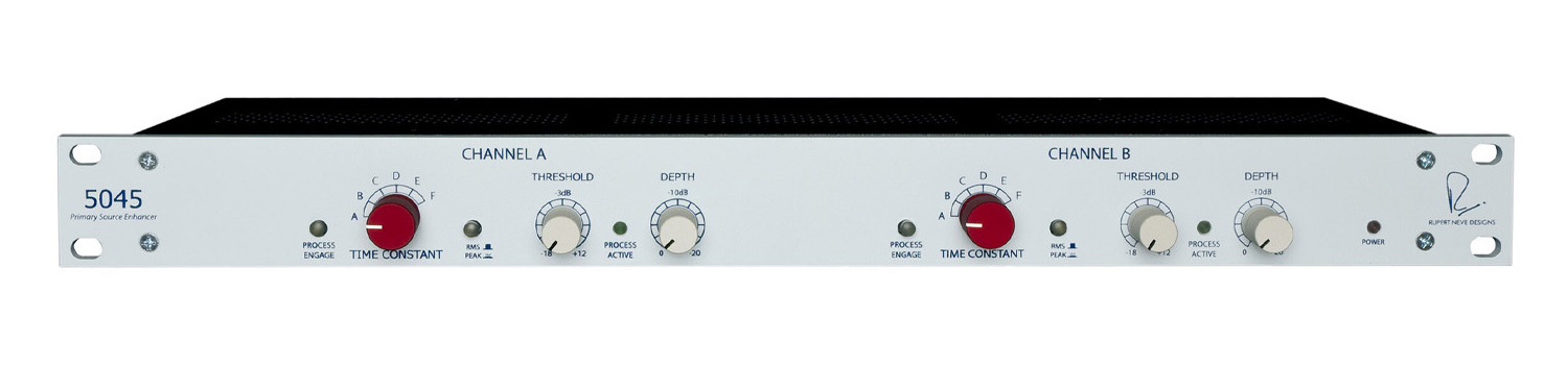 5045は、素材の完全性を損ないにくい形でコントロールすることを狙ったプロセッサーです。フィルタリングやデジタル・プロセッシングに依存せず、Rupert Neve Designsによるカスタム入出力トランスの周囲に構築したオールアナログ回路を採用しています。処理を入れた途端に質感が変わったり、帯域が痩せたりといった違和感を抑える方向でまとめられている点も、現場では扱いやすい要素です。フィードバックを抑えたい一方で、音のキャラクターは大きく変えたくない。そうした用途に向けて、自然な聴感とコントロール性の両立を狙った設計と言えるでしょう。