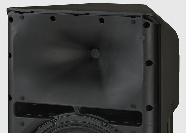 DXR mk3は、ヤマハ内製の高耐久LF/HFスピーカーユニットを採用し、低域では前後動作の対称性を高めてリニアな再生を狙い、高域ではポリイミド製ダイアフラムによって歪みの抑制と耐久性の両立を図っています。さらに大口径ホーンによる指向性制御、ポート位置の最適化による定在波の低減、軽量かつ高強度な発泡成形樹脂エンクロージャーを組み合わせることで、運搬性と音響性能の両立を図っています。