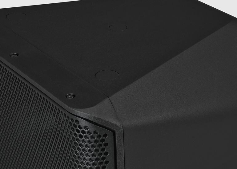 一方のDXS mk3は、サブウーファー専用のロングエクスカージョンユニットと理想的なバンドパス構造を採用しています。高出力時にも不要なノイズや風切り音を抑えながら、深い低域を効率よく再生できるよう設計されています。キャビネットにはプライウッドを用い、外装にはポリウレア塗装を施すことで、移動や設置撤去が多い現場でも扱いやすい堅牢性を確保しています。