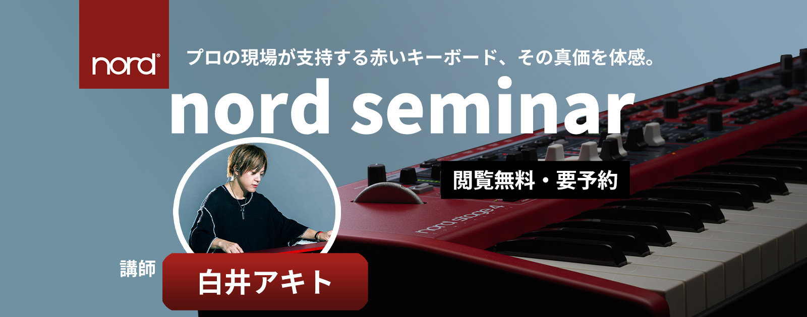 今回は、T-SQUAREなど多くのアーティストのサポートやレコーディングを手がけるキーボーディスト 白井アキト氏 を迎え、Nord製品の魅力を紹介。