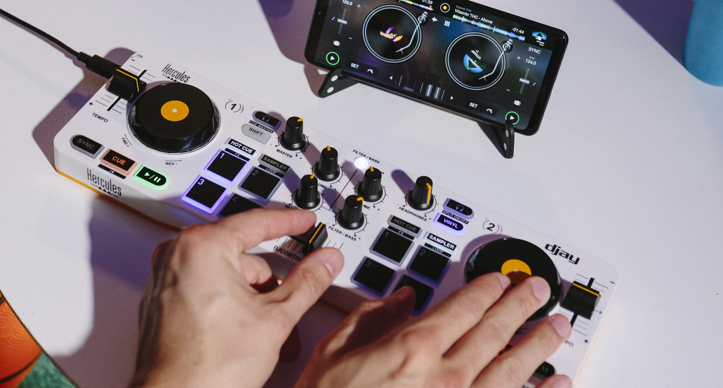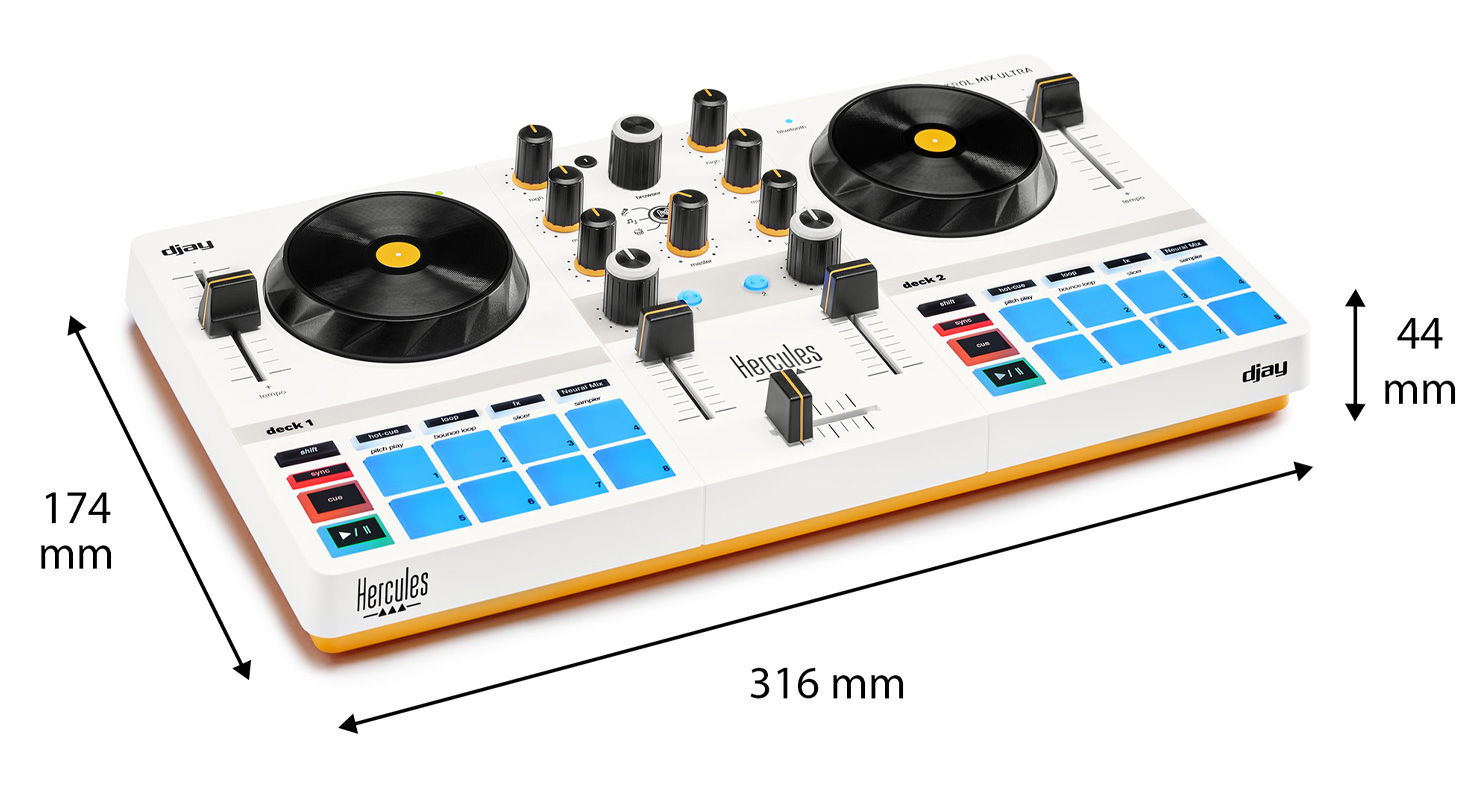 本体には、Hot Cue、Loop、FX、Neural Mix™の4つのパッドモードを搭載し、エフェクトやループプレイを直感的に操作できます。3バンドEQやタッチセンス対応ジョグホイール、8つのパフォーマンスパッドなど、Hercules伝統の使いやすさと操作のフィード感を継承しており、初心者でもDJプレイを楽しめます。対応アプリは、世界中で人気のDJアプリ「djay」。Apple Musicなどのストリーミングサービスと連携し、数百万曲のライブラリから自由に選曲・ミックスが可能です。