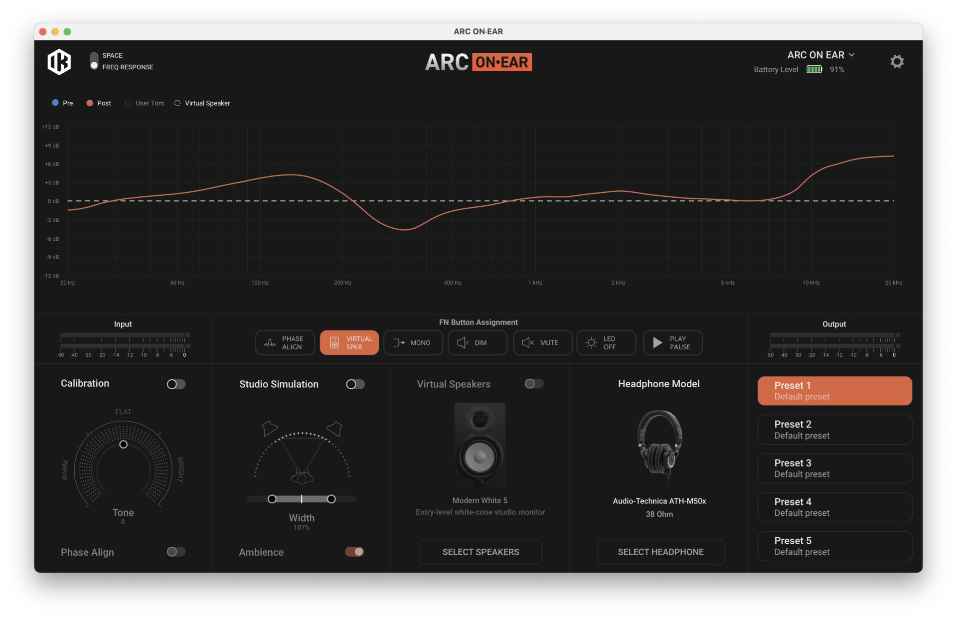 ARC ON•EARにはStudio Simulation、そしてVirtual Spearkerというユニークな機能も搭載されています。