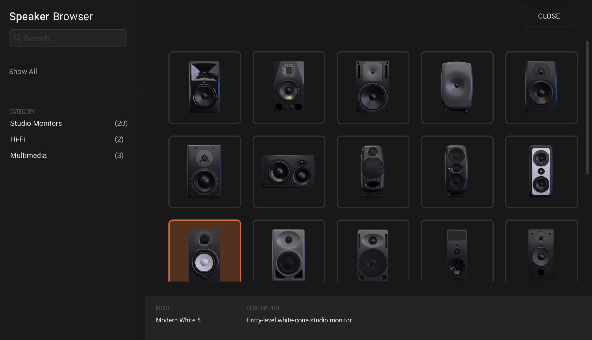 ヘッドホンと比較すると少ないものの、IK社のiLoudシリーズを含む定番のモニタースピーカーのプロファイルが複数用意されています。