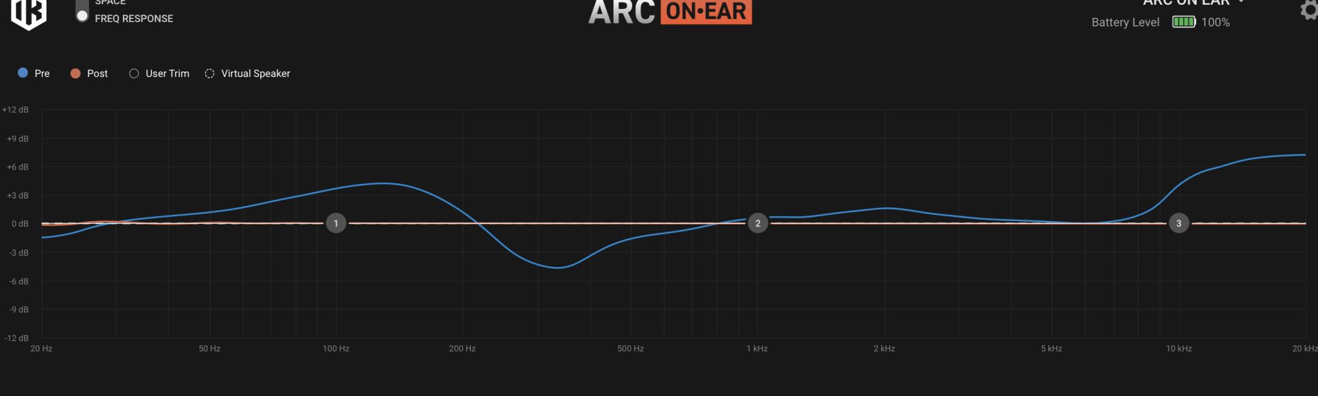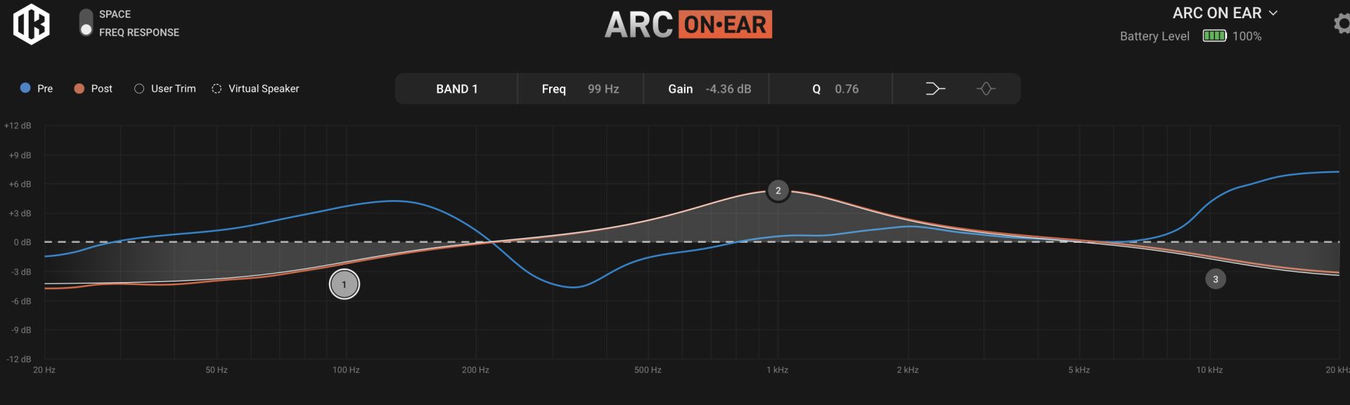 表示されているのはソフトウェア上ですが、これらの補正が実際にはARC ON•EARのハードウェア上で行われている形となります。