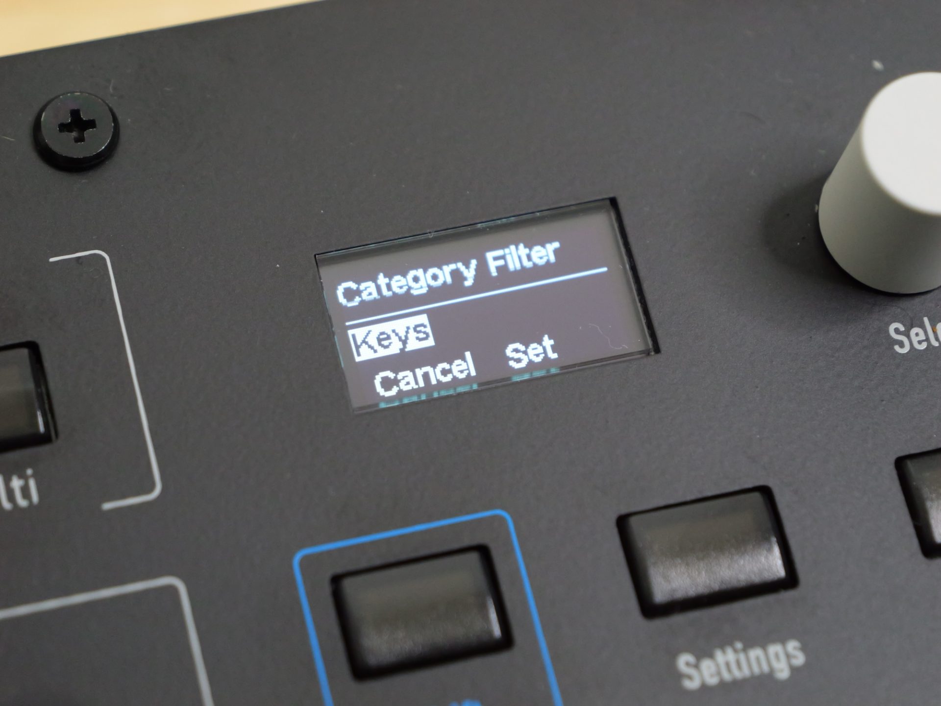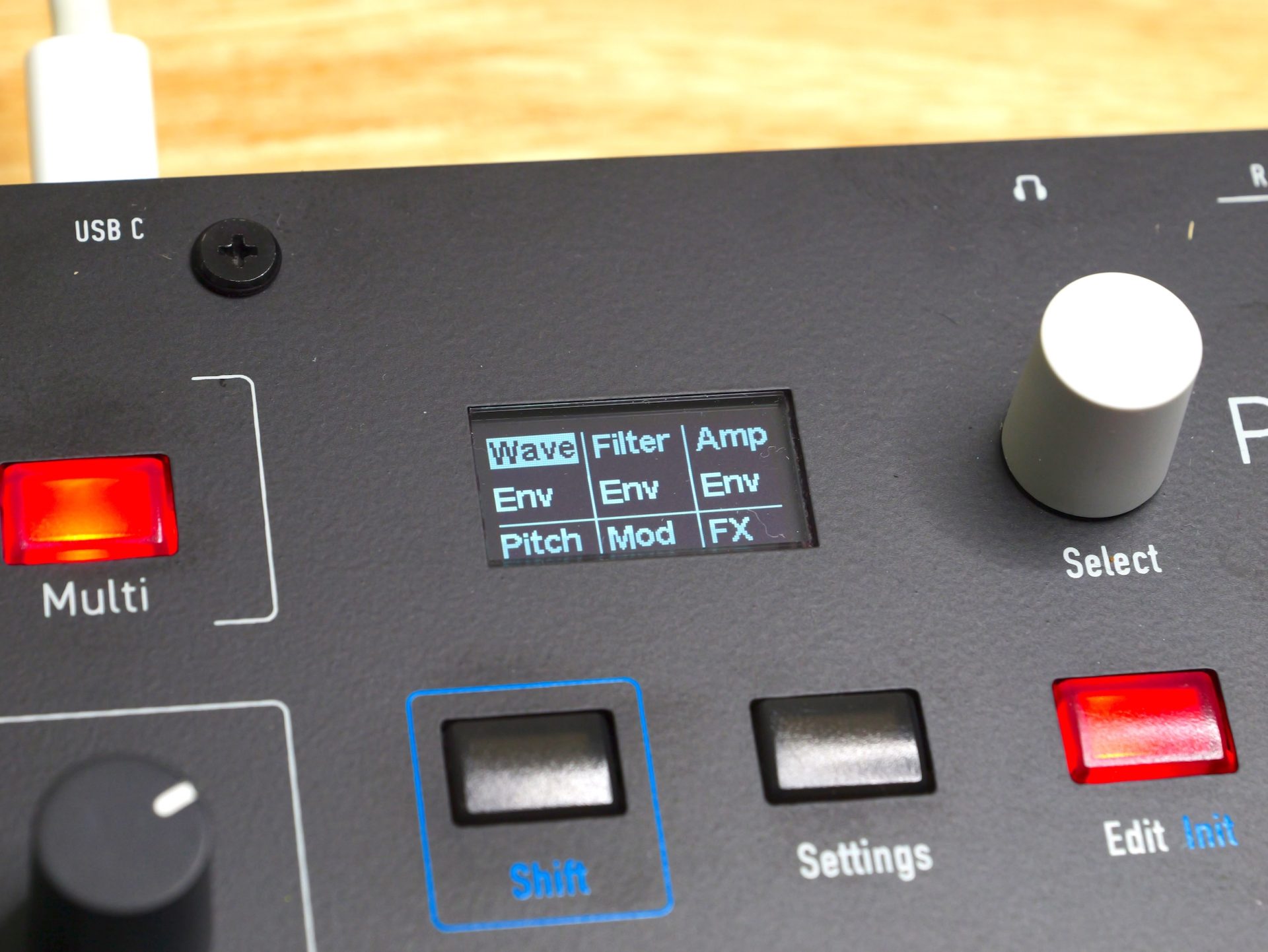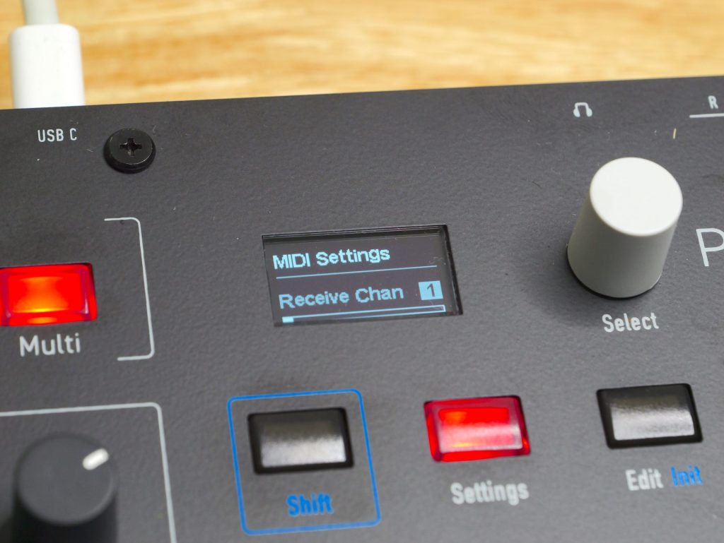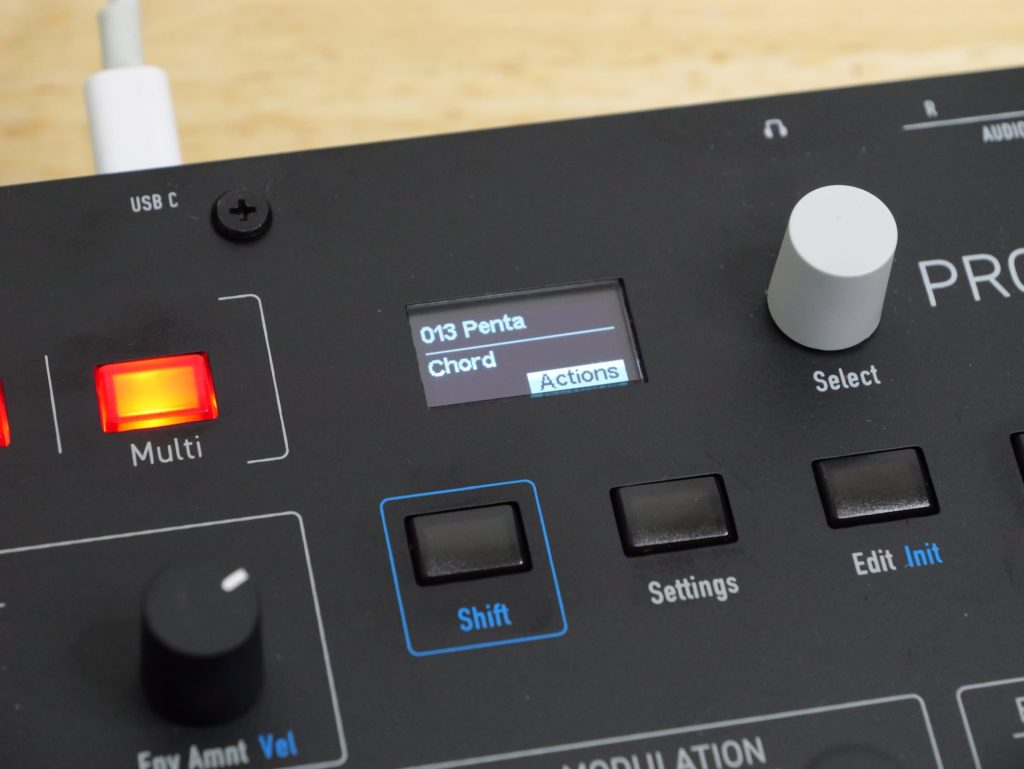 例えばAmp Envelope内のAttackとReleaseを同時につまみでグリグリ動かす、という動作は現時点ではできない模様。Selectつまみで弄りたいパラメーターを切り替えながら操作する必要があります。