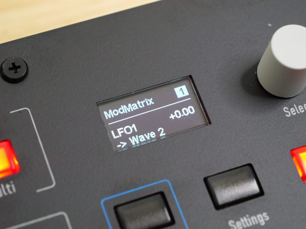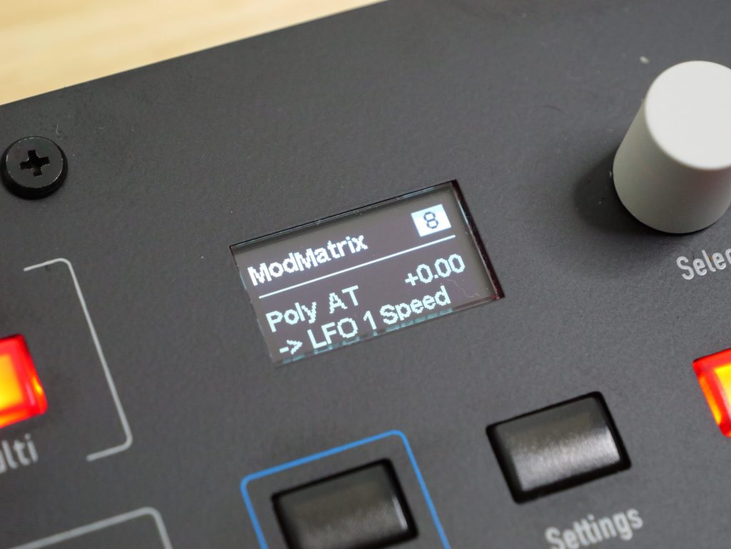 モジュレーション・マトリックス(ModMatrix)が8スロット用意されており、コンパクトなサイズながらも多彩なサウンドを作る事が可能です。