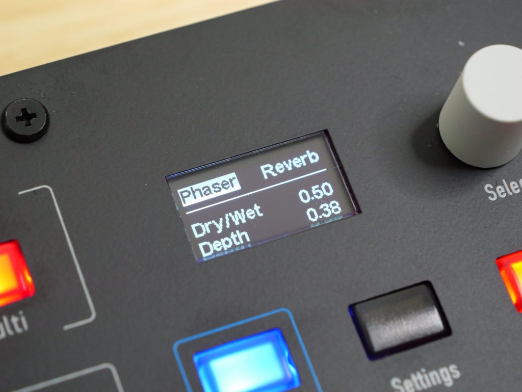 本体のつまみは2つだけとなっていますが、こちらは他のセクションと異なりパラメーターを切り替える事で、エフェクトのDry/Wet以外にも様々な値を変更する事が可能です。