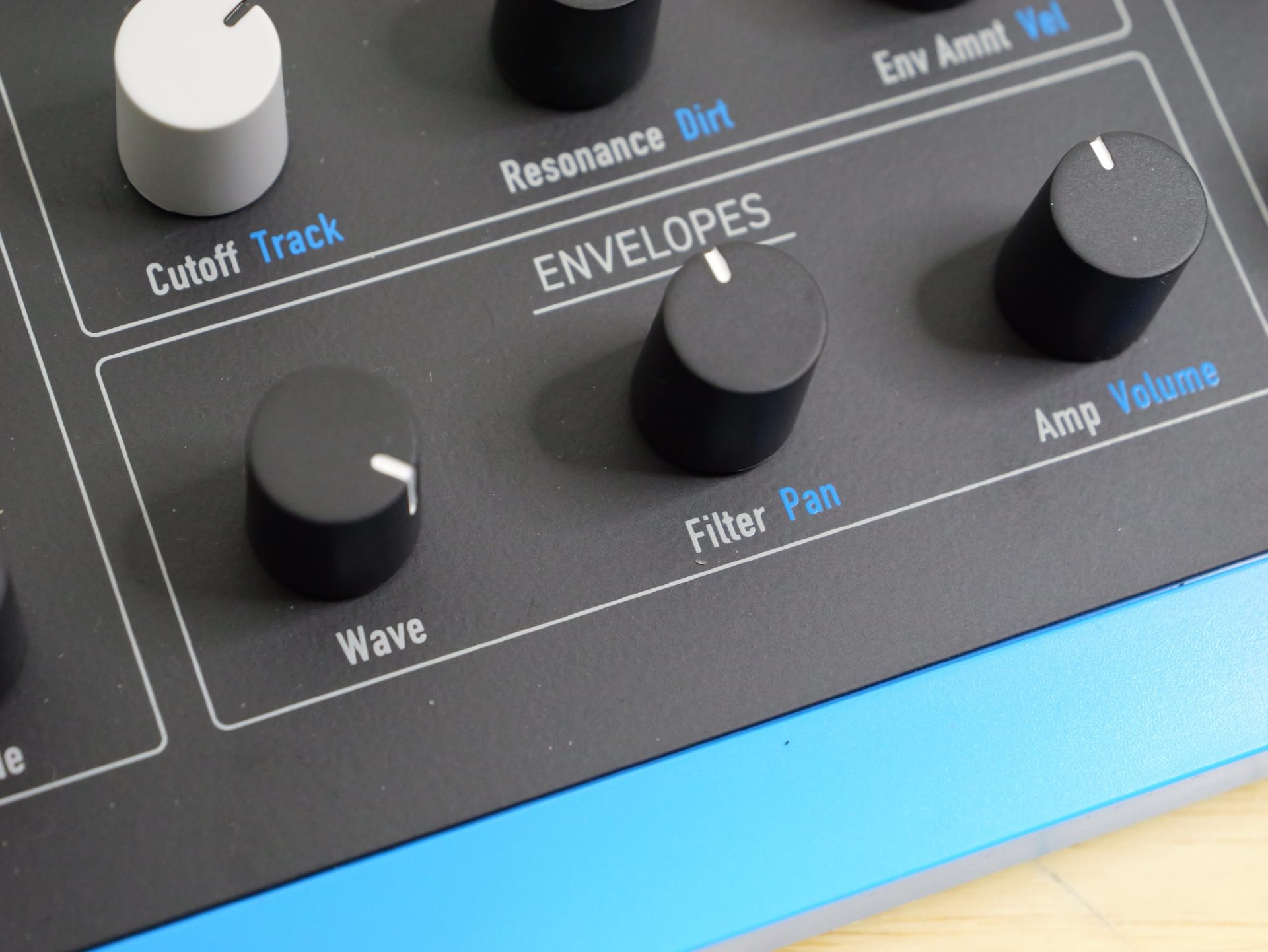 エンベロープ部分にはWave(音色の変化)、Filter(フィルターの変化)、Amp(音量の変化)の3つが用意されています。