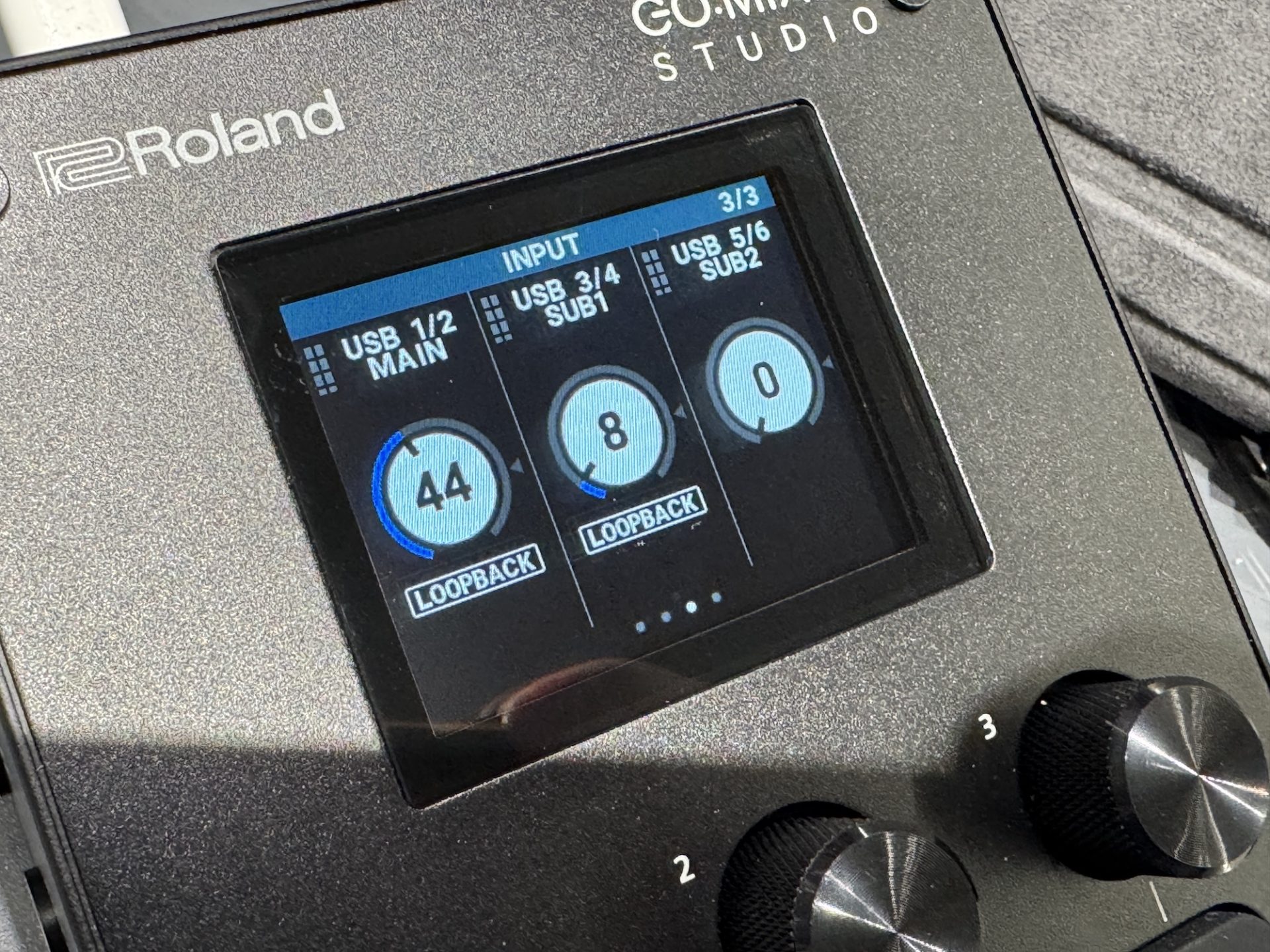 なので例えば、仲間でボイスチャットをしながらPCゲーム実況の配信を行う際に、GO:MIXER STUDIOにマイクを接続、USB 3/4 ゲームの音、USB 5/6にボイスチャットの音を割り当てておき、それぞれの音量を個別でコントロール可能です。