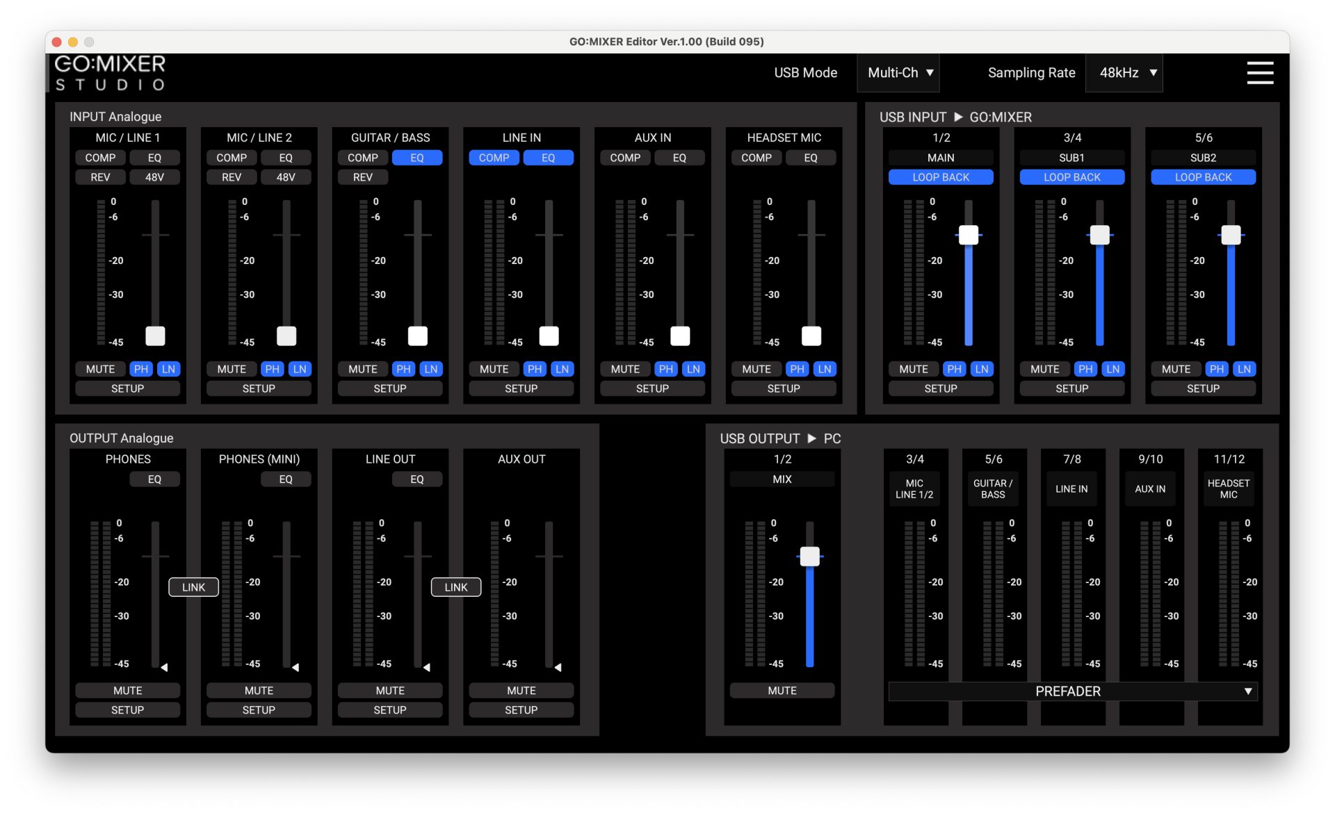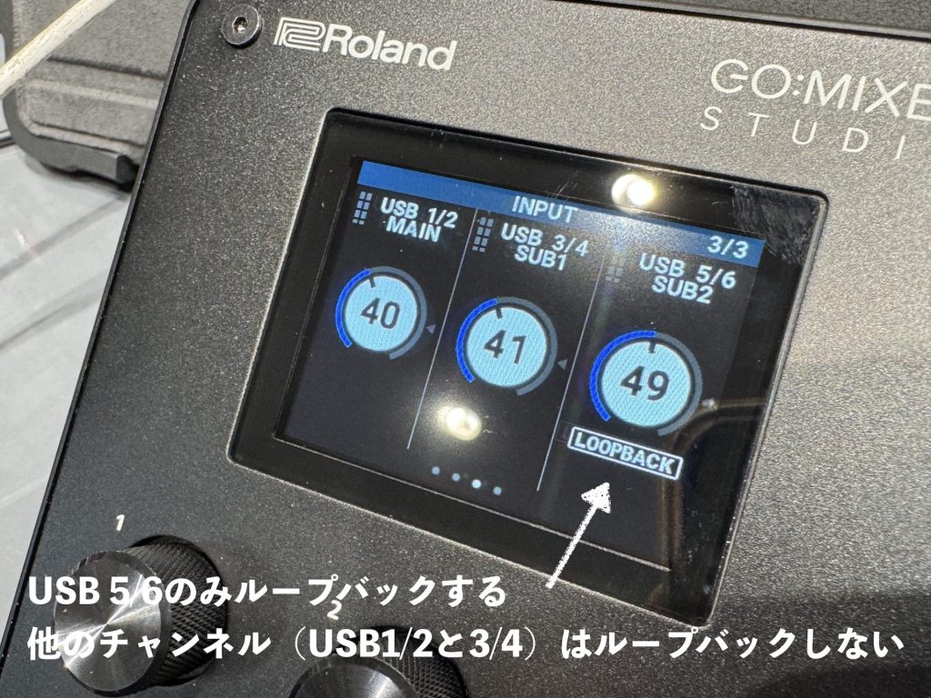 しかし、こちらのGO:MIXER STUDIOには各入力チャンネルごとにLOOPBACKのON/OFFが用意されており、任意に設定が可能。
