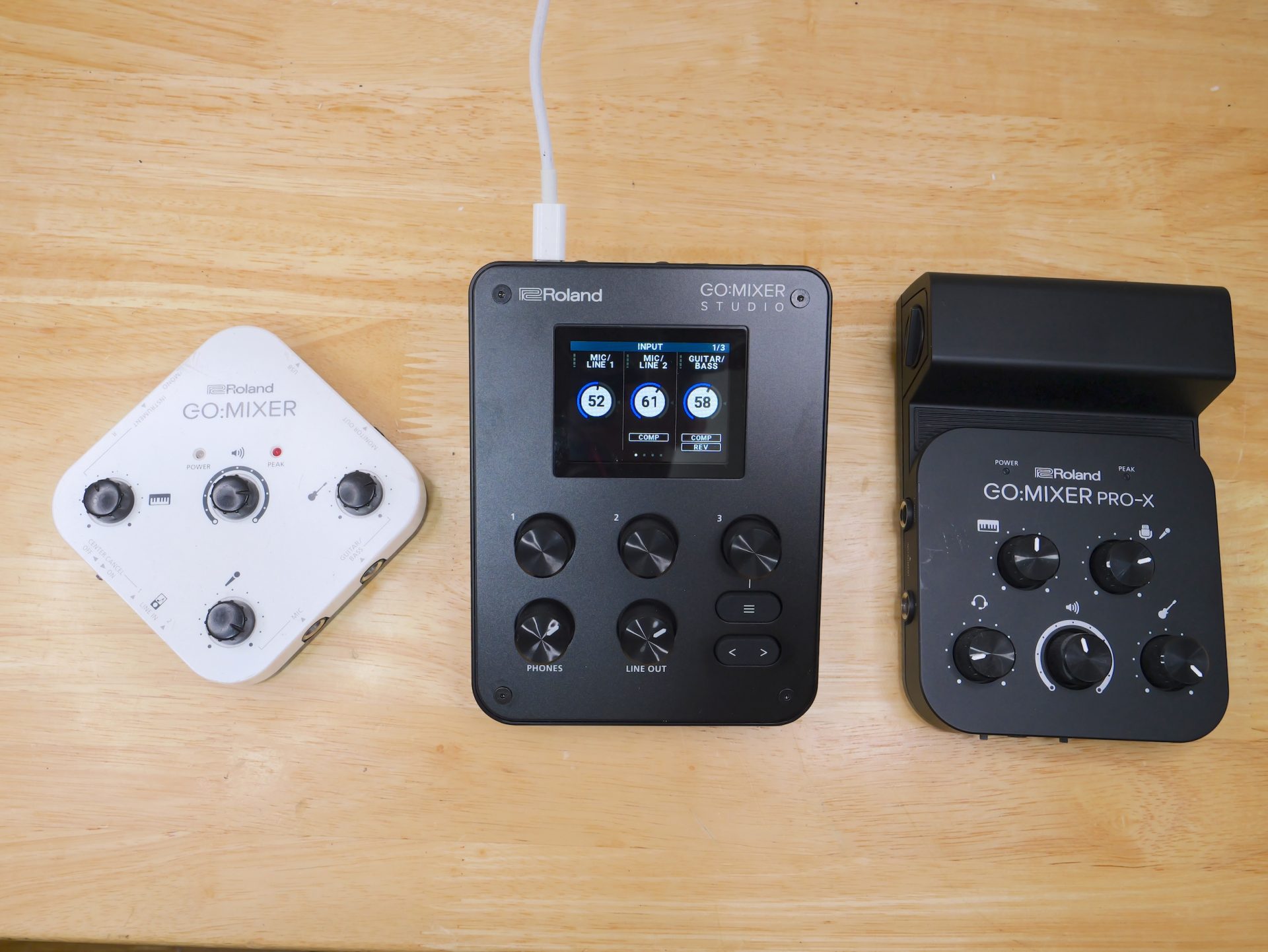 ちなみに初代GO:MIXERやGO:MIXER PRO-Xと並べてみるとこんな感じ。