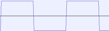 パルス波は四角い波形ですが、上部の幅が全体の何%になっているかを示す値をパルス・ウィズ(PW)といいます。パルス・ウィズパラメーターで上部と下部の幅を調節することができます。その幅の比率をデューティ比といいますが、デューティー比が1:1またはパルス・ウィズ50%のものをSquare WAVE(スクエア波:矩形波)と呼びます(下図)。