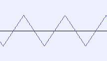 矩形波より倍音が少なく、正弦波に近い丸い音色です。上昇する部分と下降する部分が同じ傾斜を持っています。エレクトリック・ピアノや音程の高い木管楽器などで使われる場合があります。