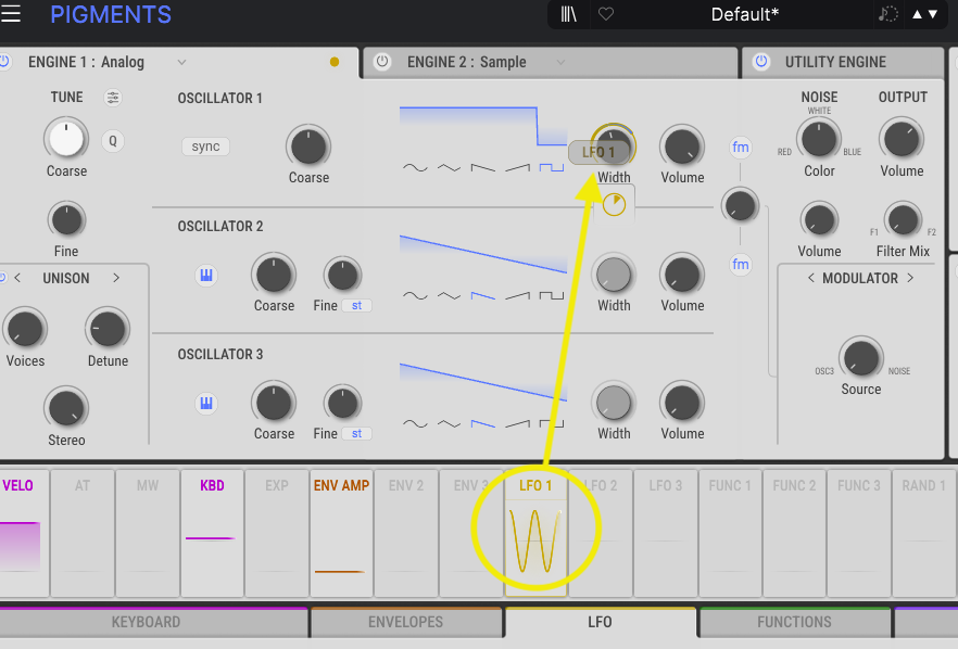 Pigmentsでこれらの効果を確かめることもできますが、PigmentsのLFOによるモジュレーション設定は少々特殊(画期的でもある)ですので、その方法を説明します。