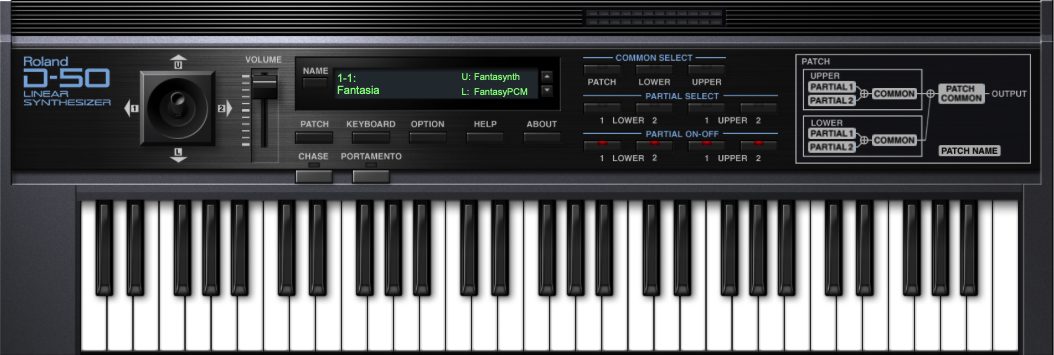 下記はソフト音源として復活したRoland Cloud版D-50。有名なプリセット「Fantasia」はPCM(サンプリング波形)のベルとアナログ波形のパッドサウンドで構成されています。